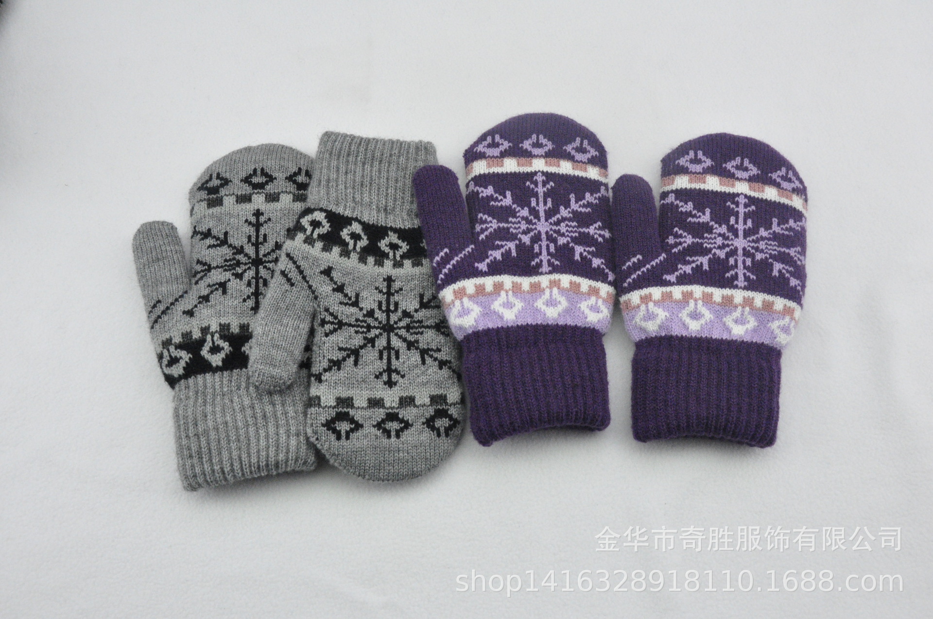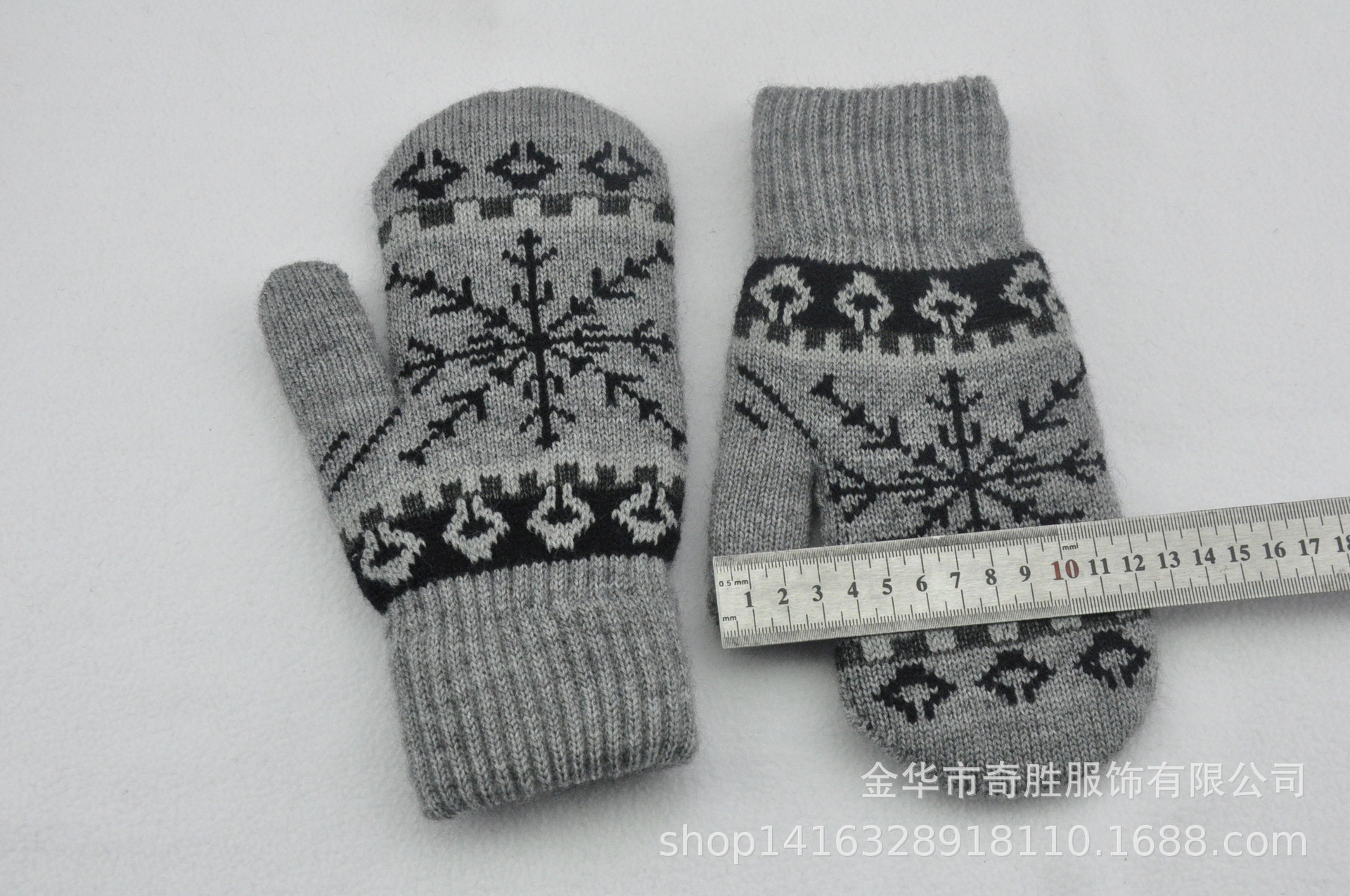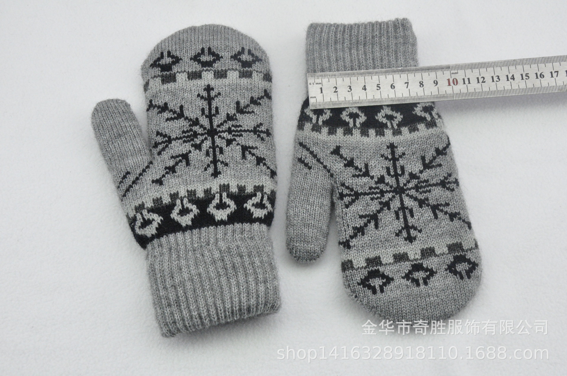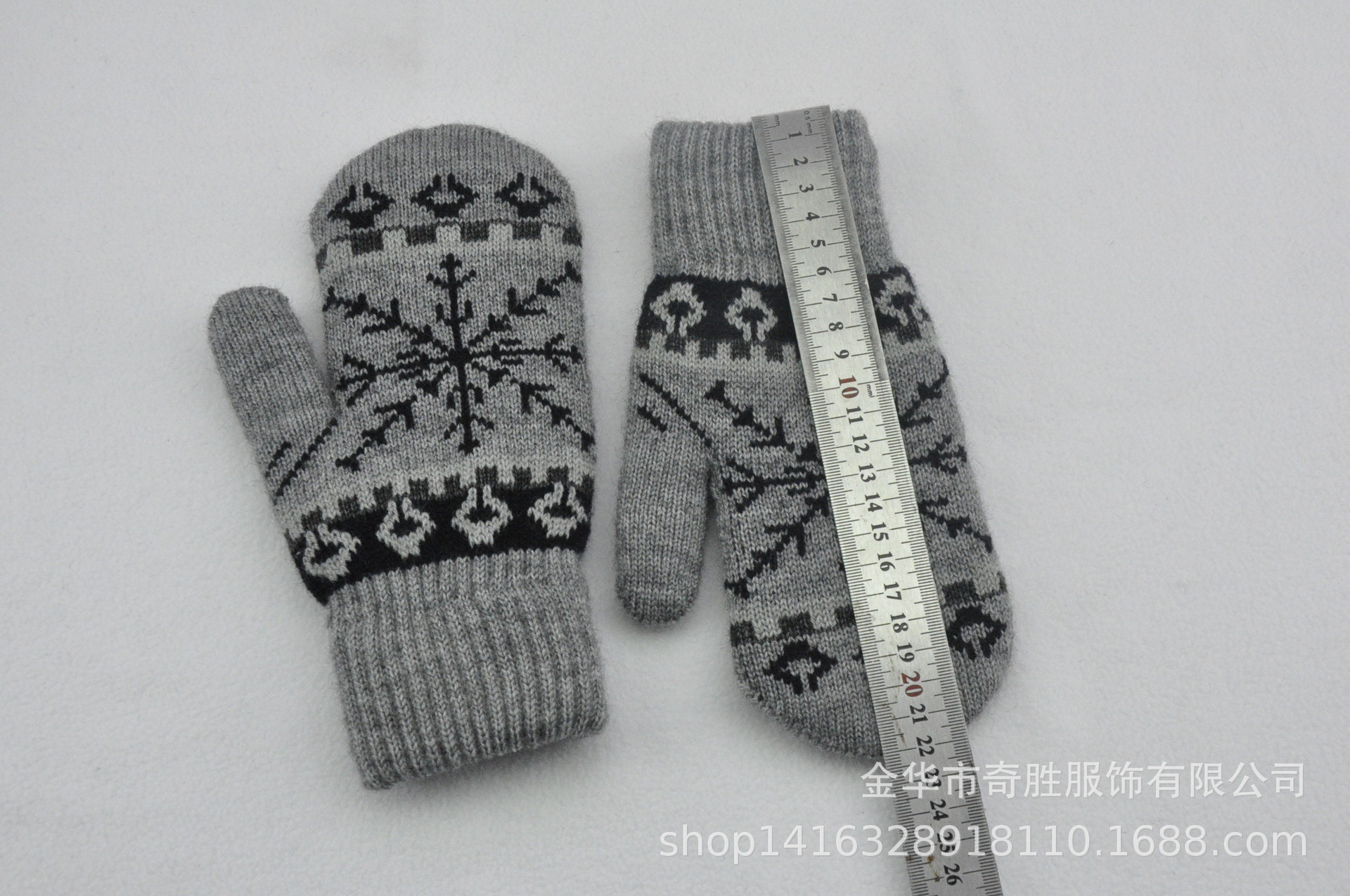 성인 여자의 귀여운 손가락 가방 장갑 겨울 기모 여분의 두꺼운 눈송이 자카드 니트 울 장갑스토어 가기