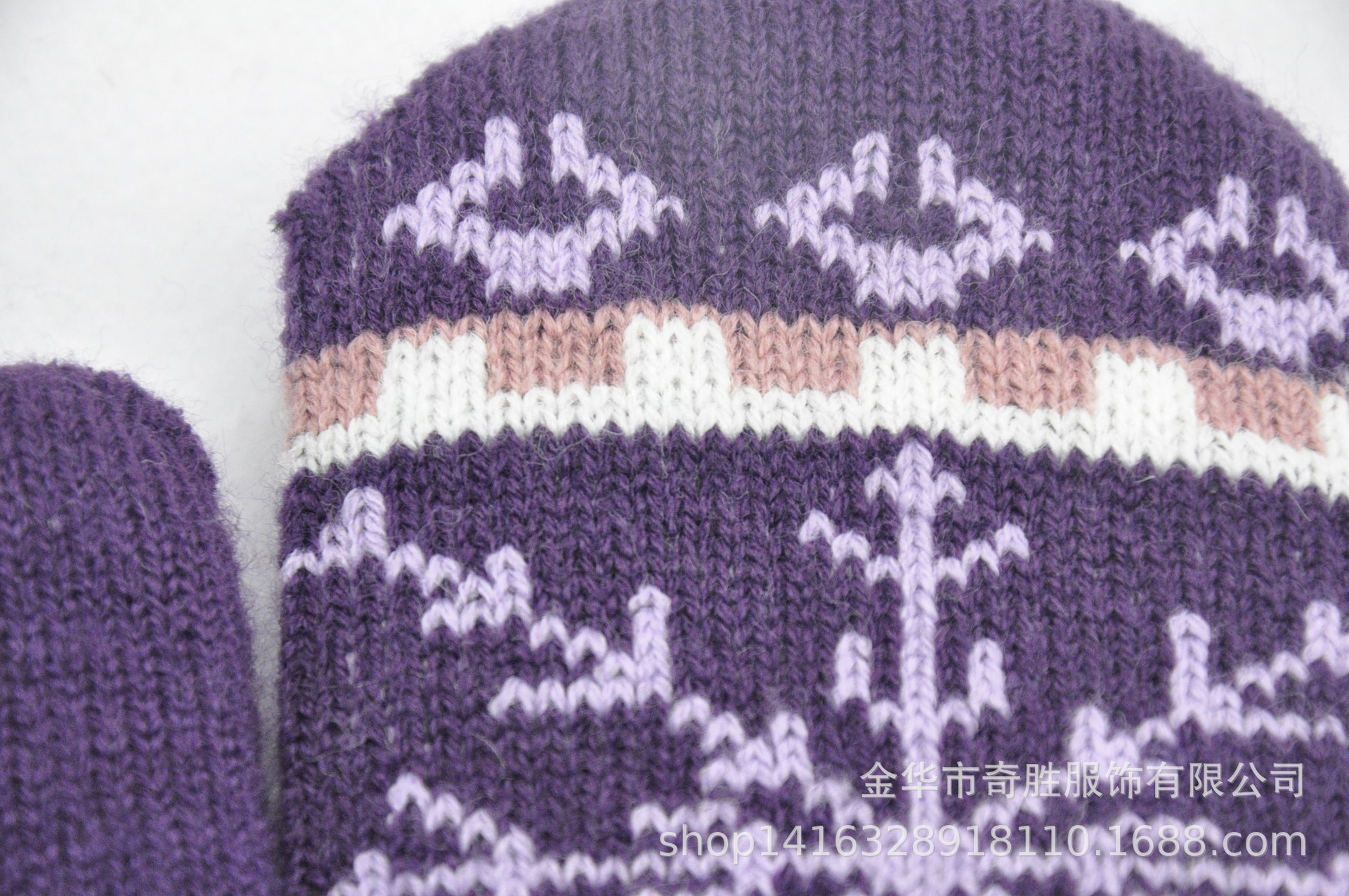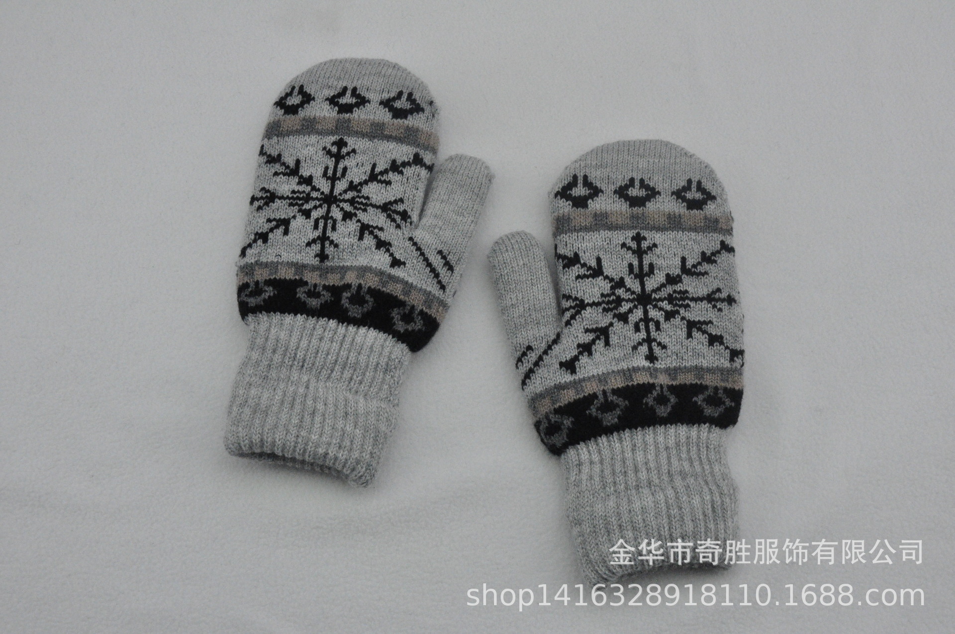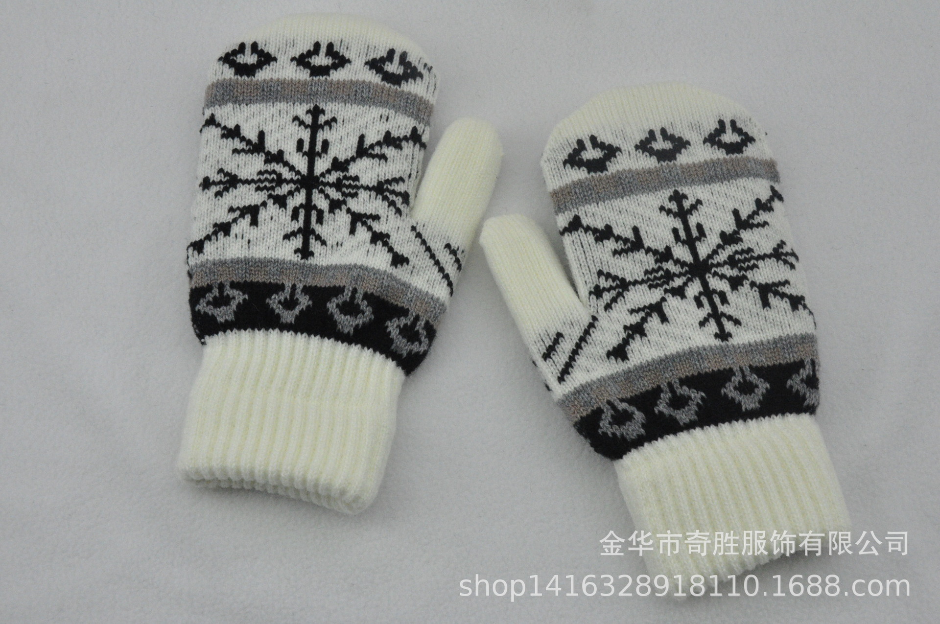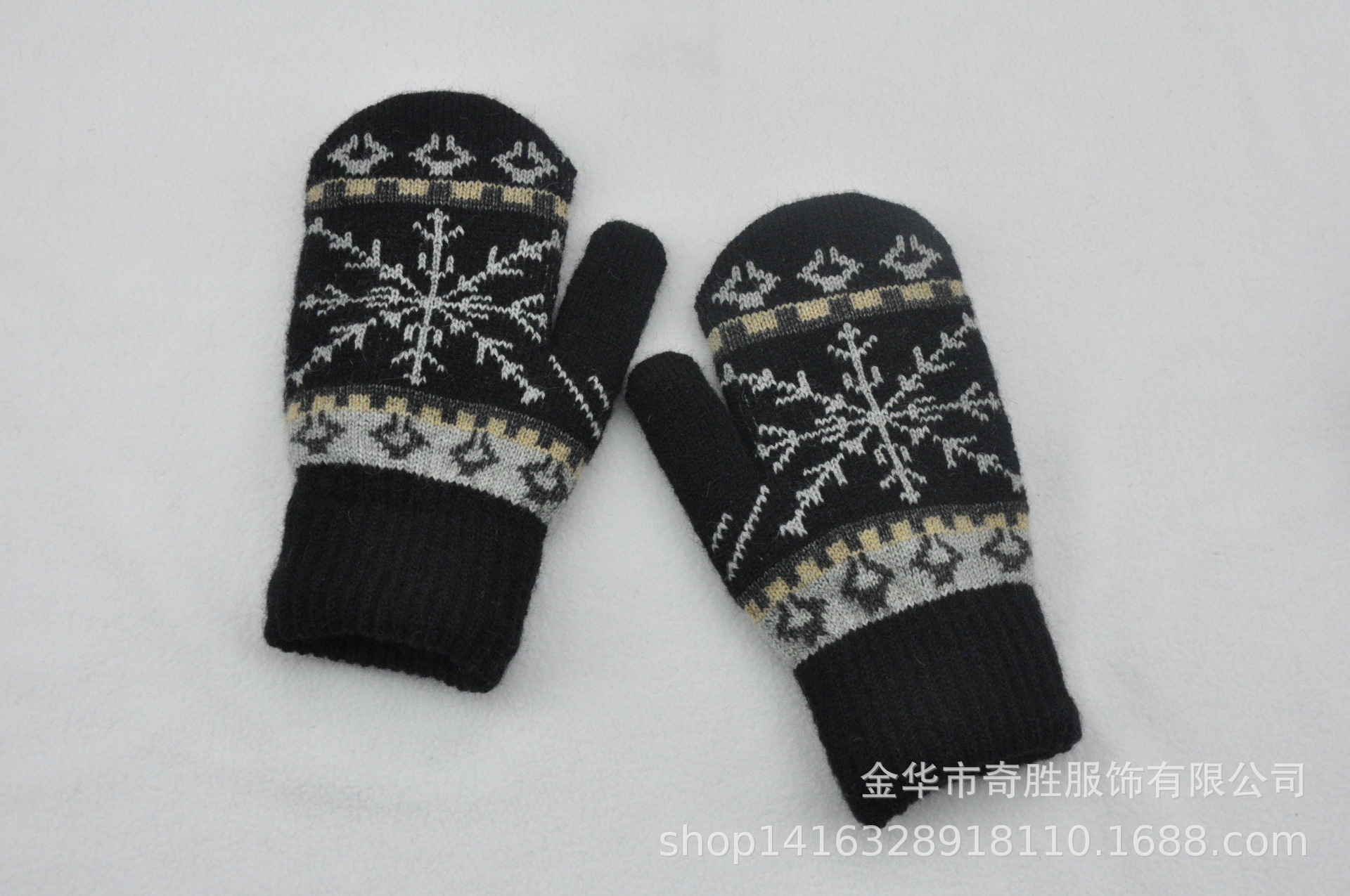 성인 여자의 귀여운 손가락 가방 장갑 겨울 기모 여분의 두꺼운 눈송이 자카드 니트 울 장갑스토어 가기