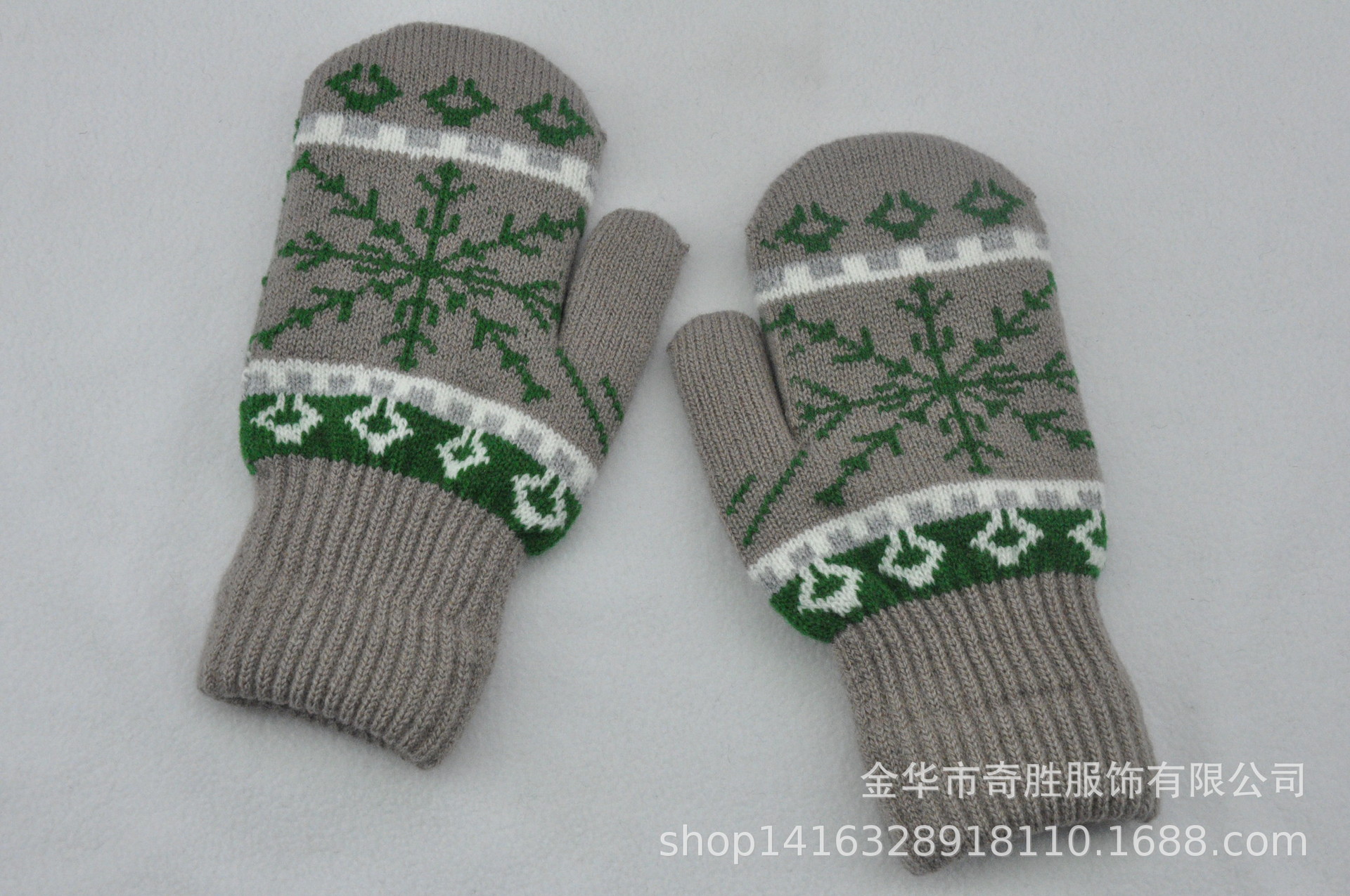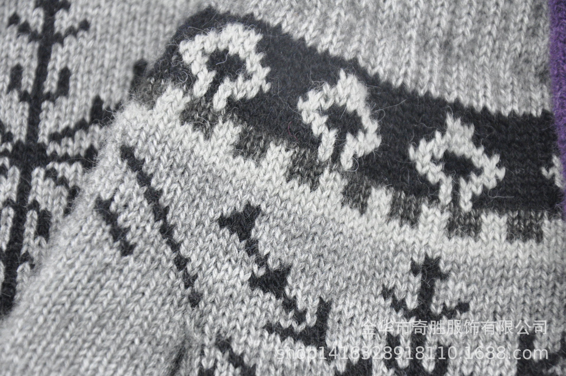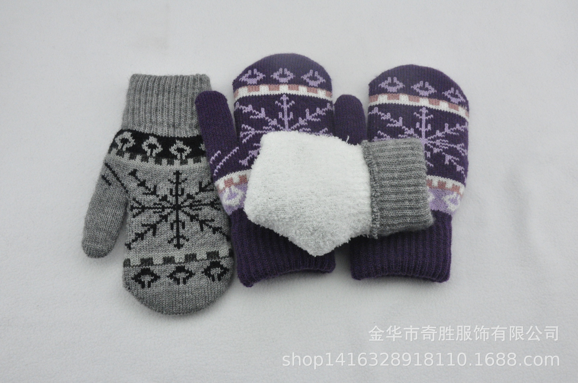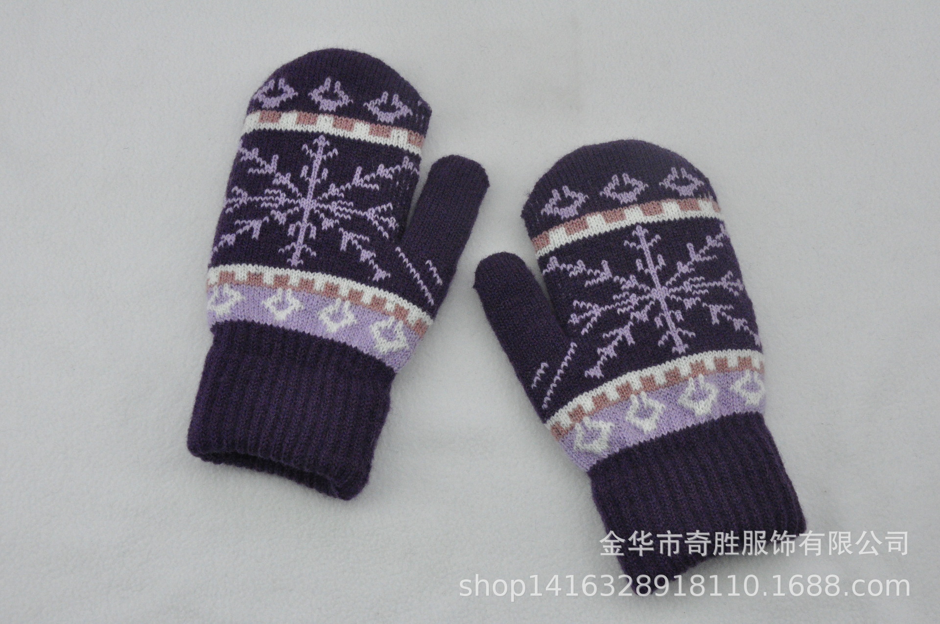 성인 여자의 귀여운 손가락 가방 장갑 겨울 기모 여분의 두꺼운 눈송이 자카드 니트 울 장갑스토어 가기
