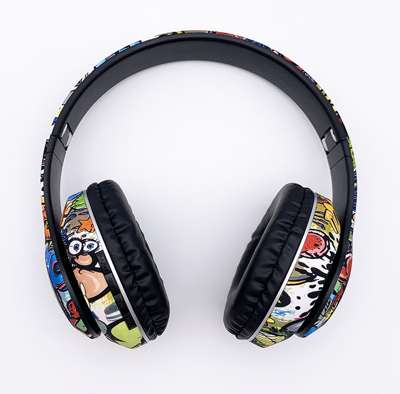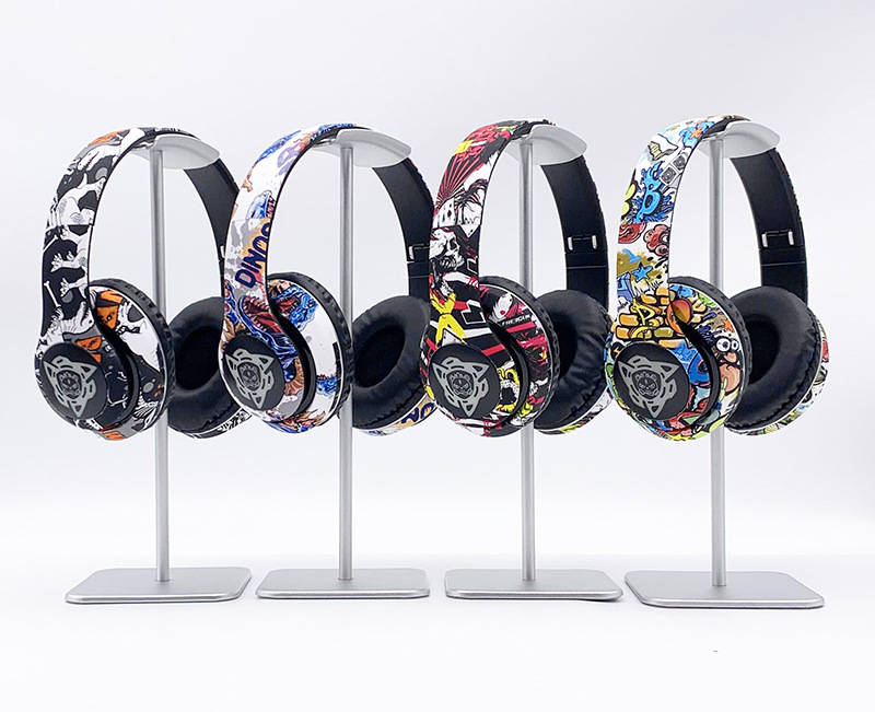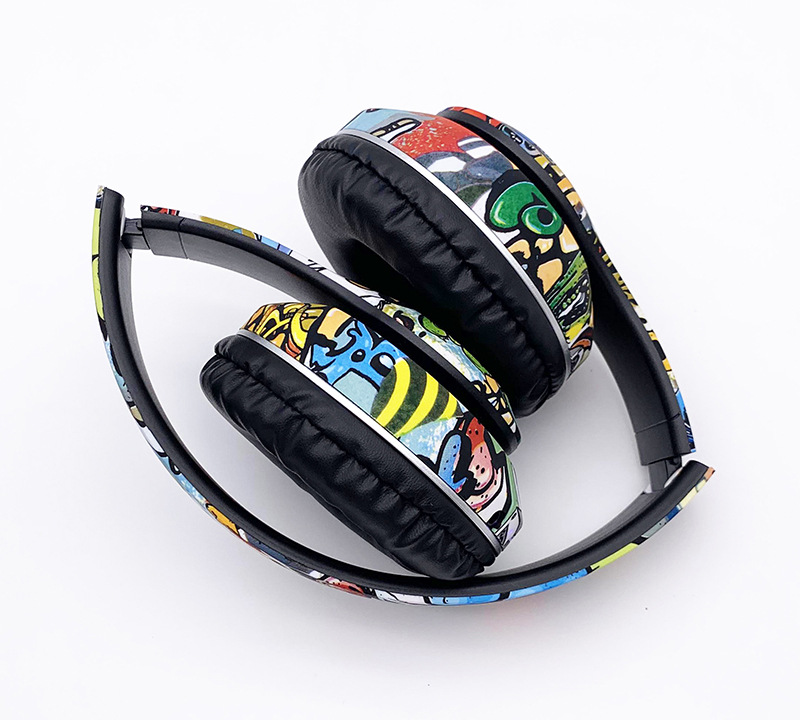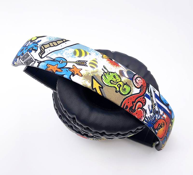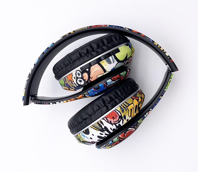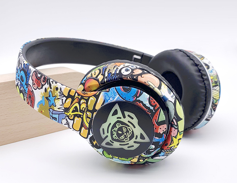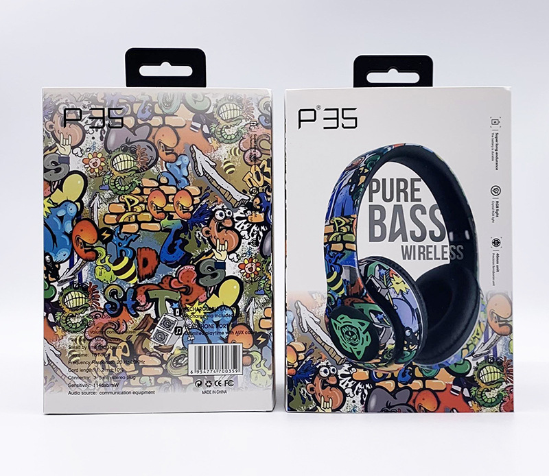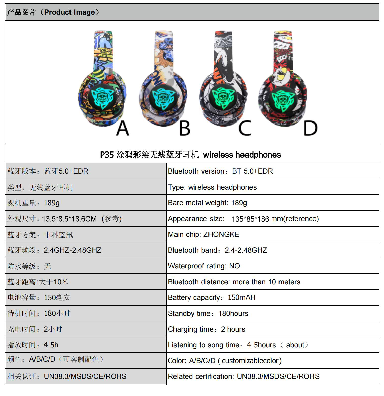 국경 간 인기 P35 국가 트렌드 낙서 헤드 장착형 Bluetooth 헤드셋 LED 발광 컬러 페인트 무선 플러그인 카드 긴 배터리 수명
