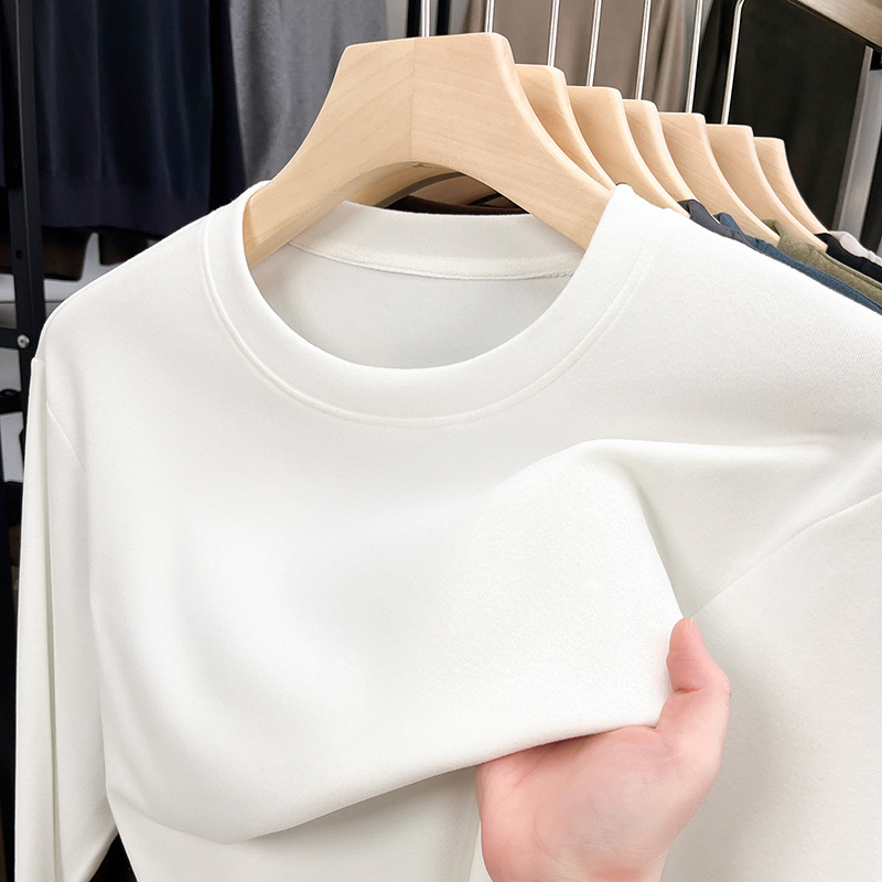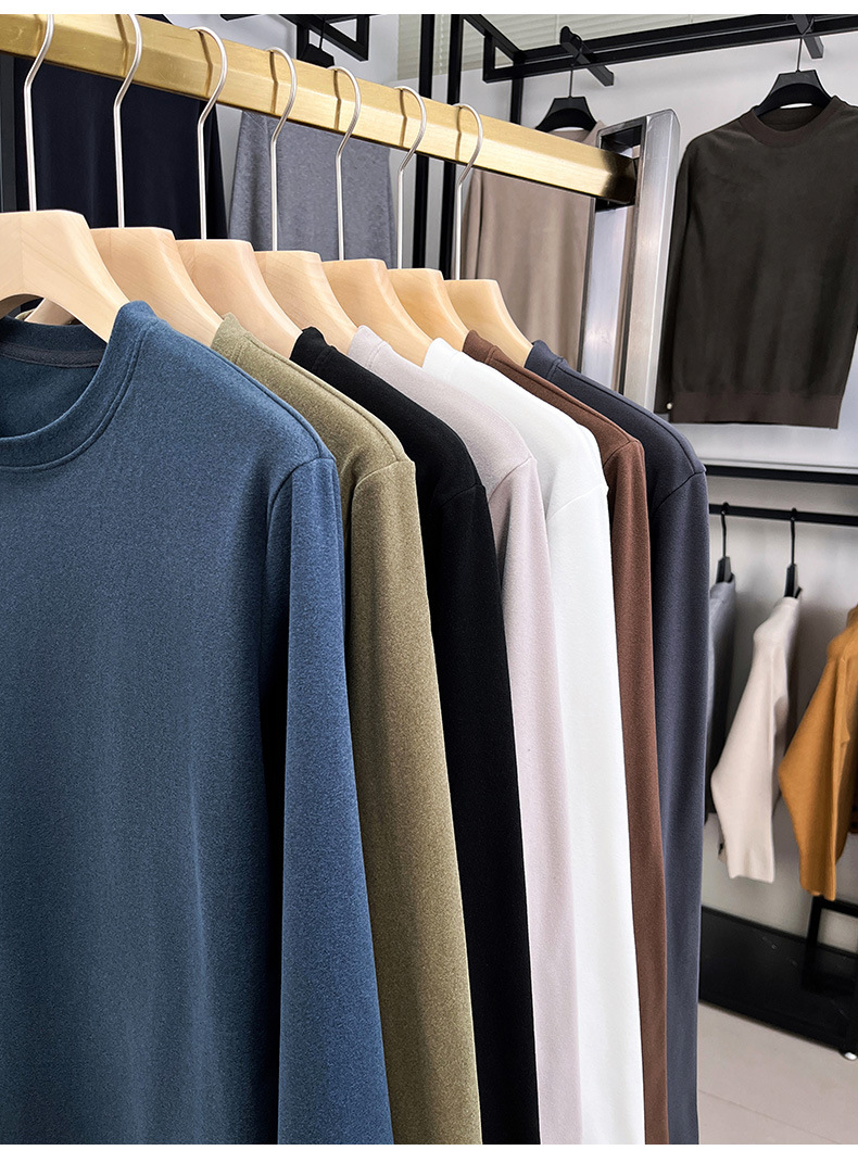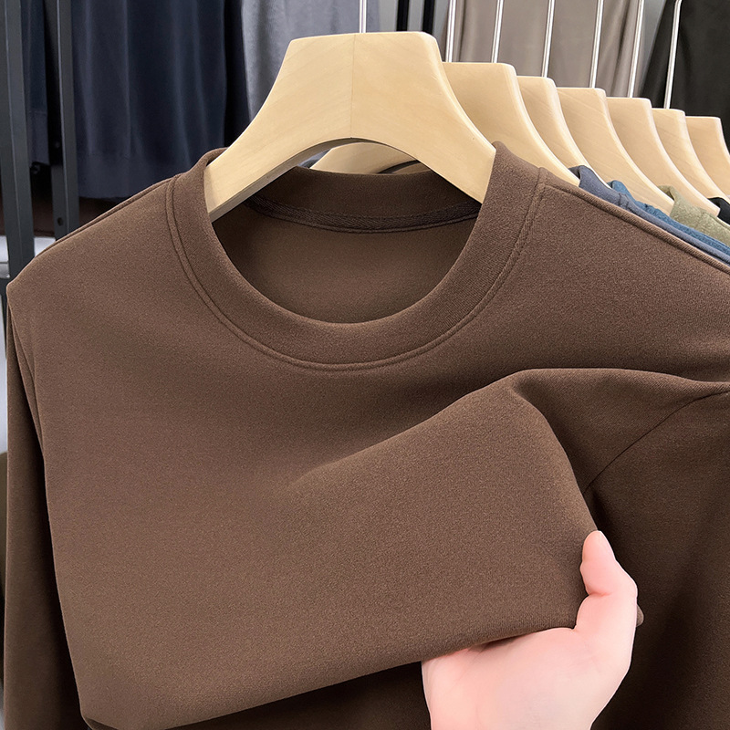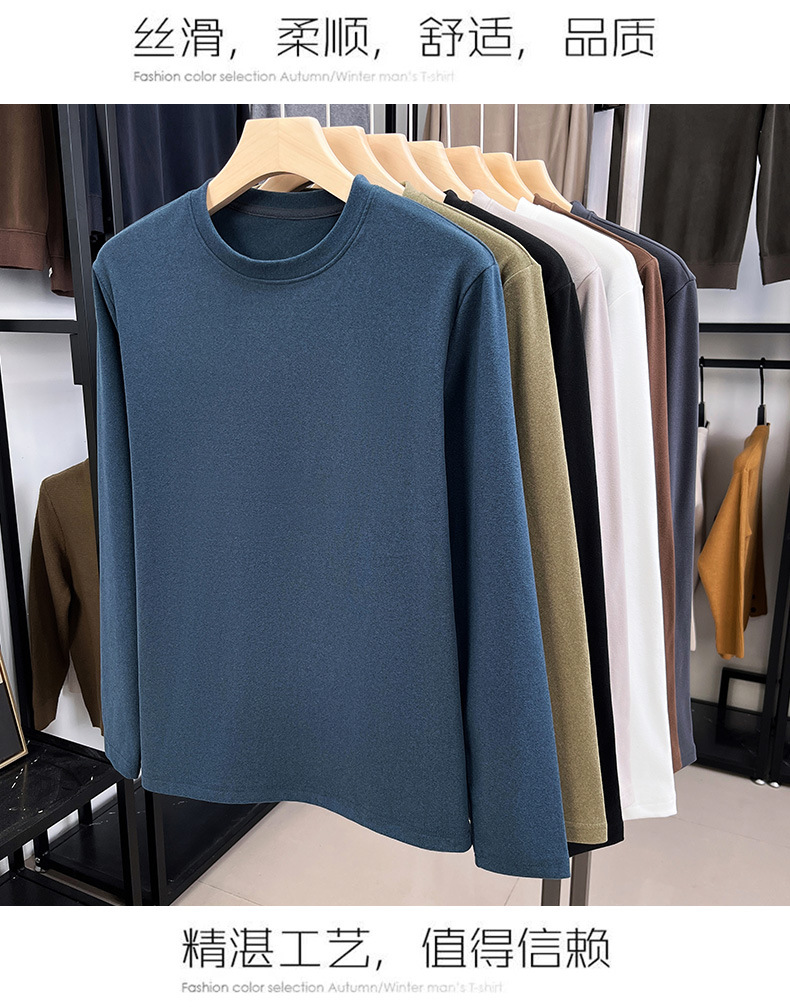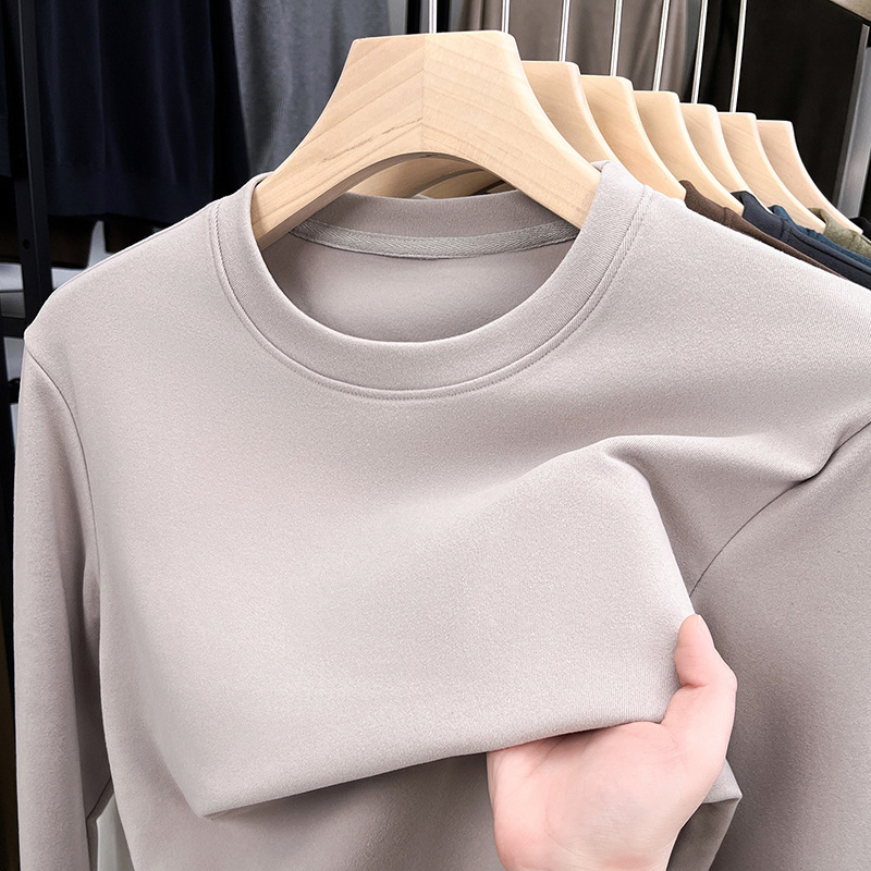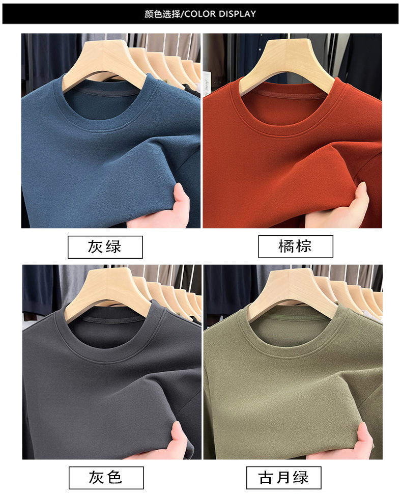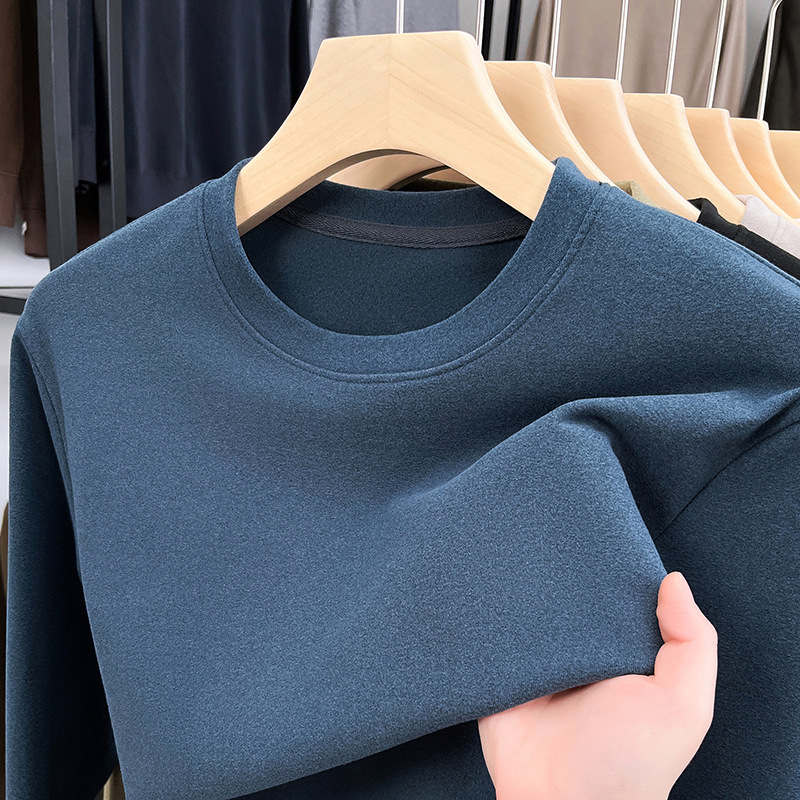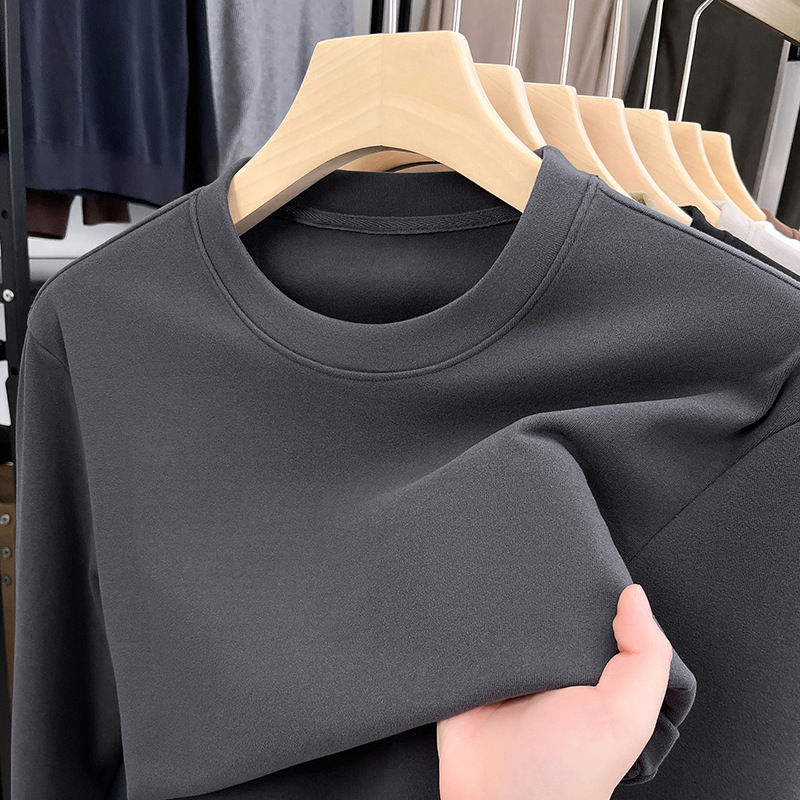 2025 가을 겨울 신상 양면 독일산 벨벳 스웨트셔츠 남성용 라운드넥 청년용 단색 보온 긴팔 남성용 이너웨어스토어 가기