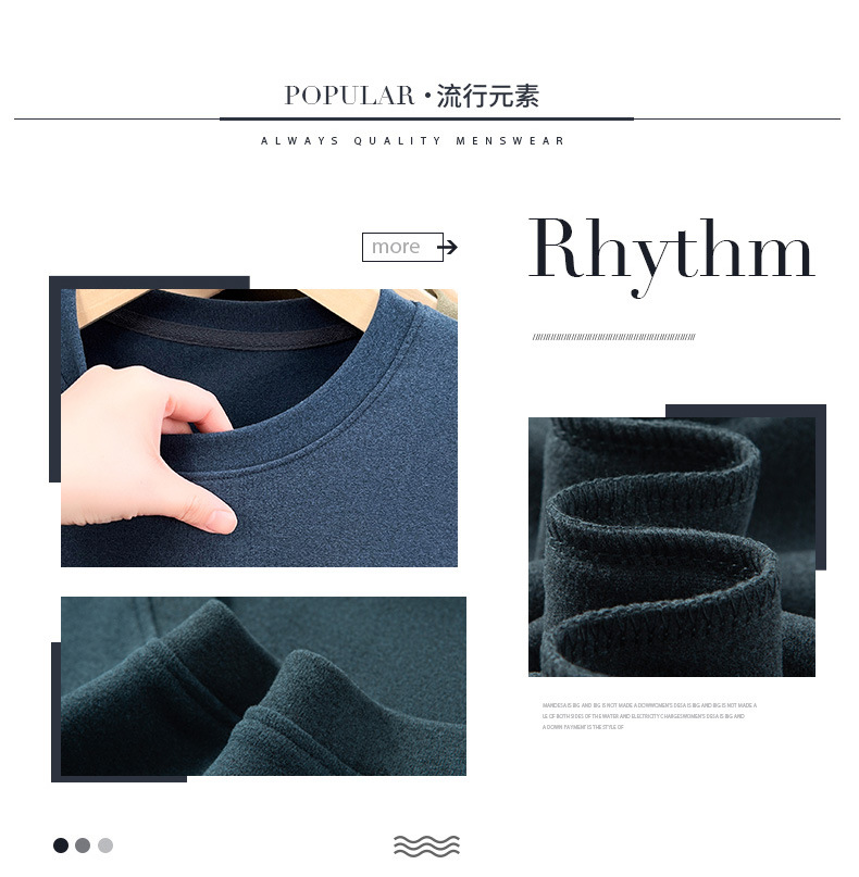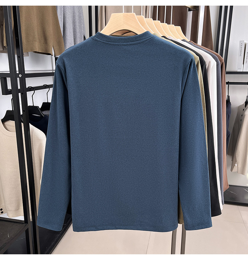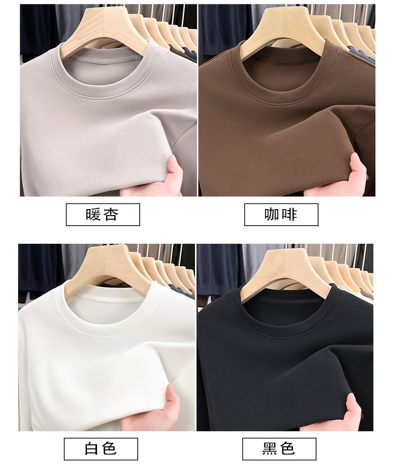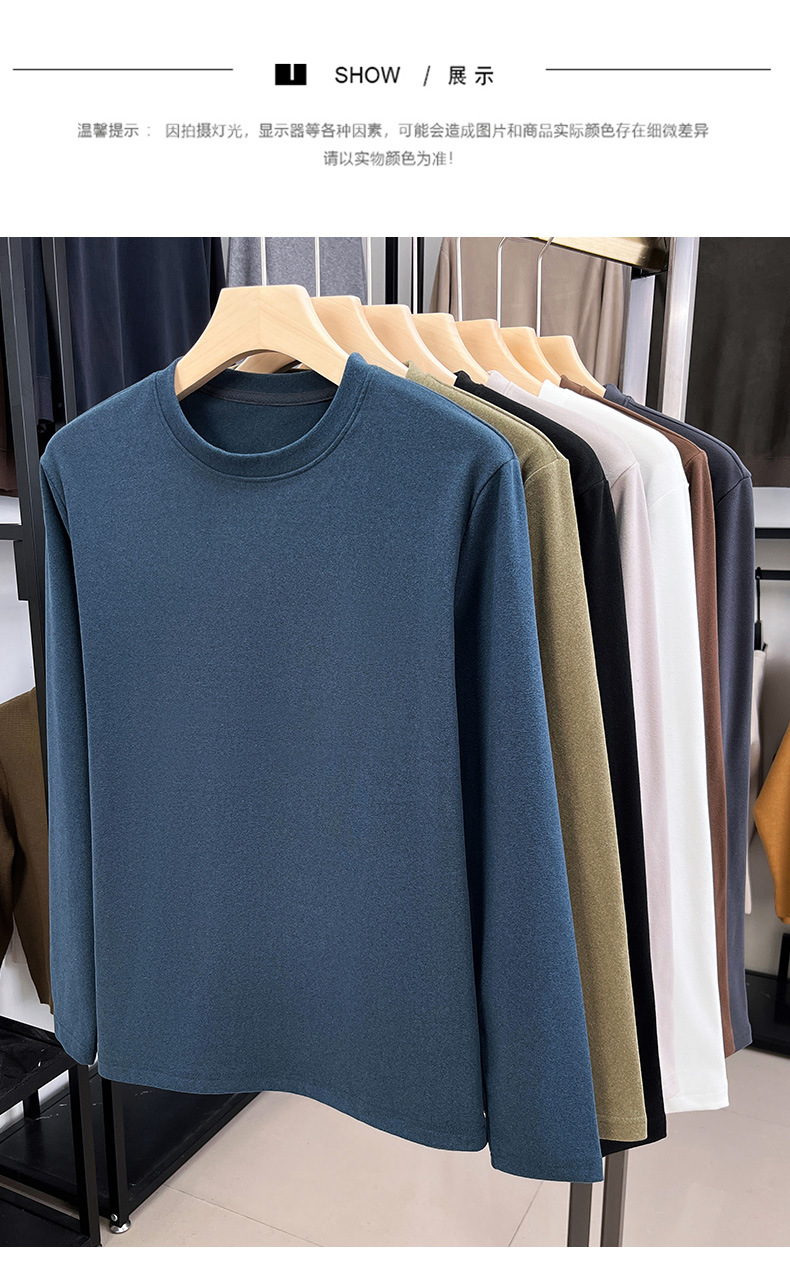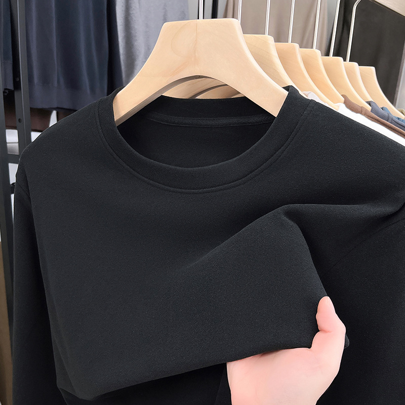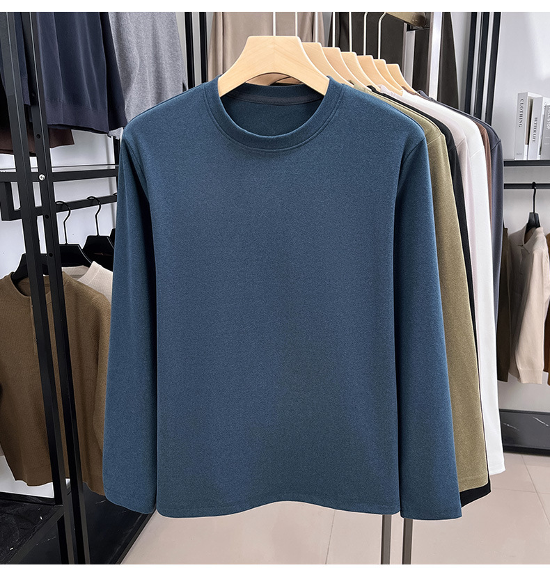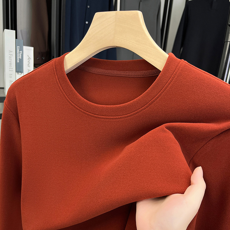 2025 가을 겨울 신상 양면 독일산 벨벳 스웨트셔츠 남성용 라운드넥 청년용 단색 보온 긴팔 남성용 이너웨어스토어 가기