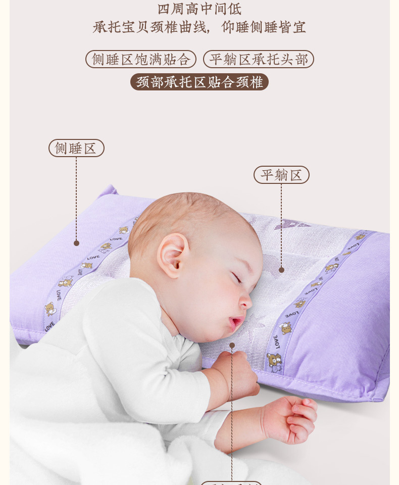 원몽 베개 베개심 어린이용 편안한 베개 편안한 형태 유지 베개 귀여운 아기 베개 가정용 시원한 통기성