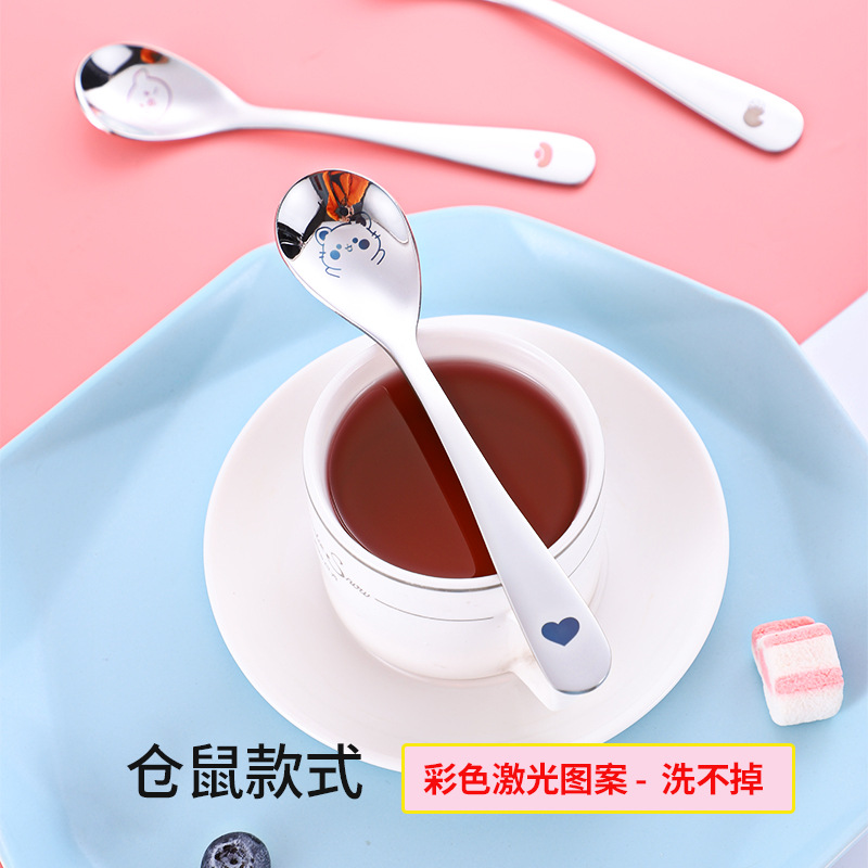 스테인레스 스틸 숟가락 만화 귀여운 어린이 숟가락 가정용 아기 부모-자식 숟가락 긴 손잡이 식당 숟가락 작은 숟가락스토어 가기