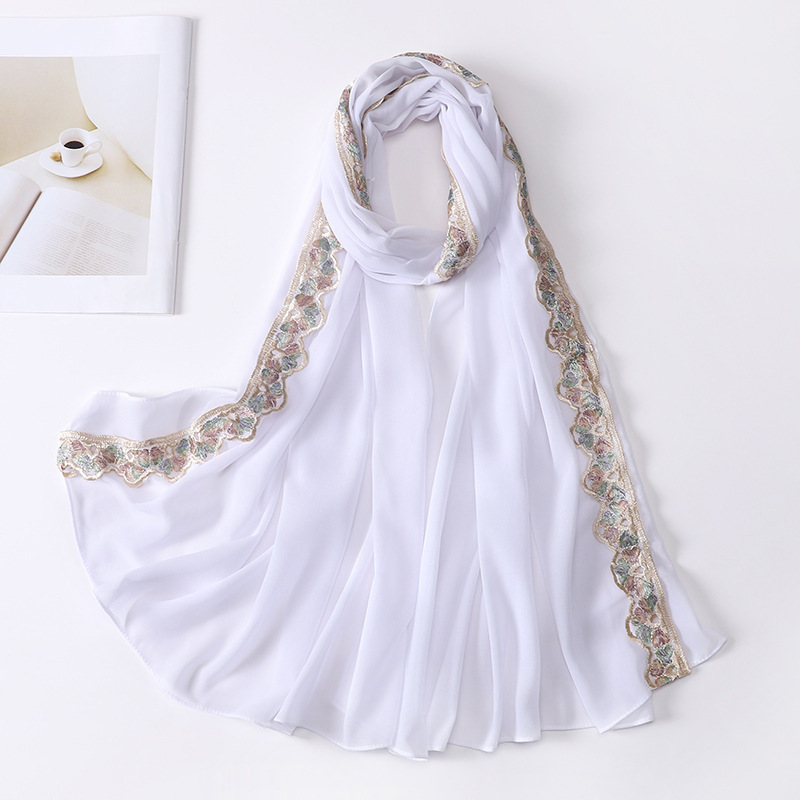 새로운 진주 쉬폰 소재 레이스 장식 발가락 모자 스카프 말레이시아 패션 헤드 스카프 도매스토어 가기