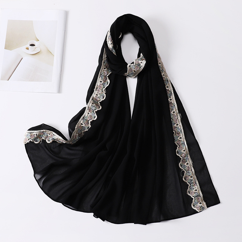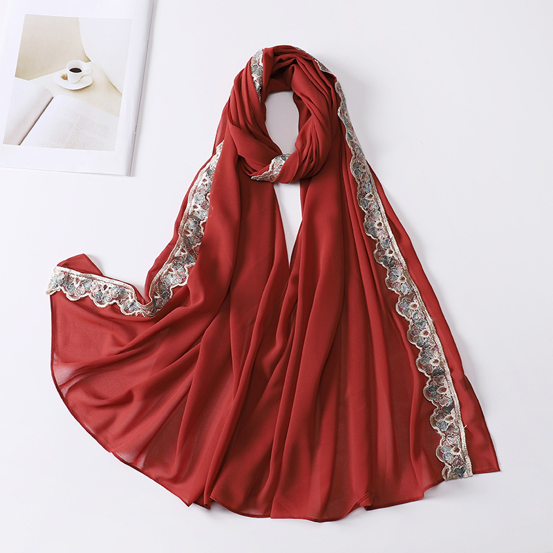 새로운 진주 쉬폰 소재 레이스 장식 발가락 모자 스카프 말레이시아 패션 헤드 스카프 도매