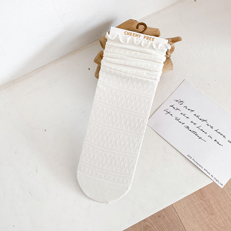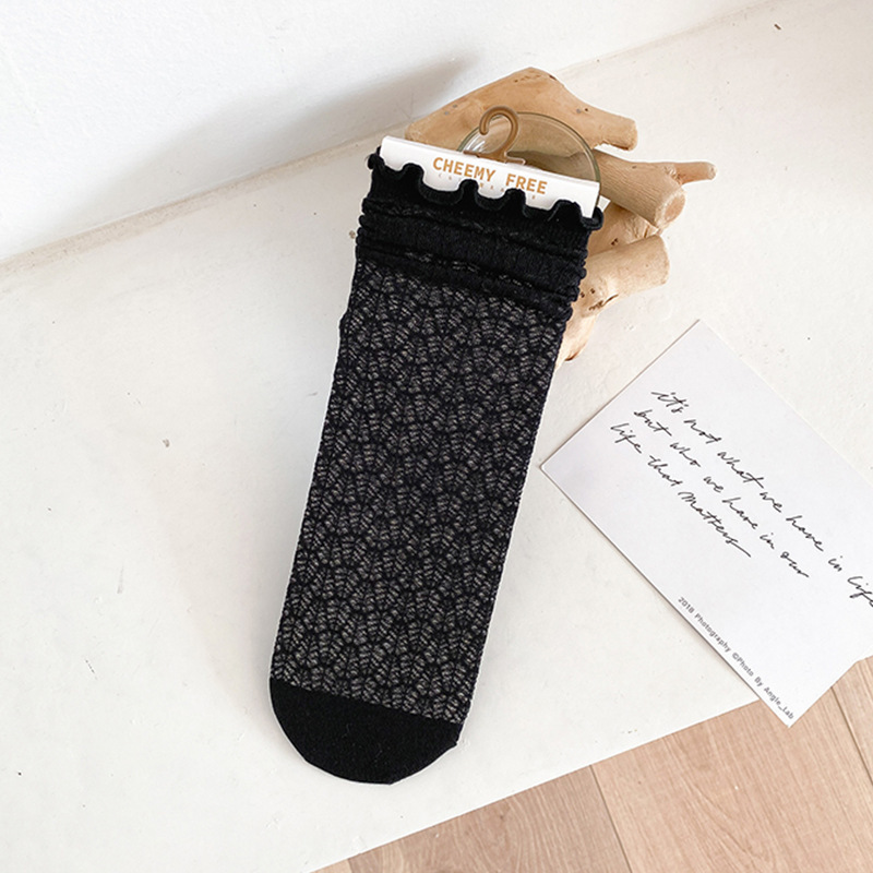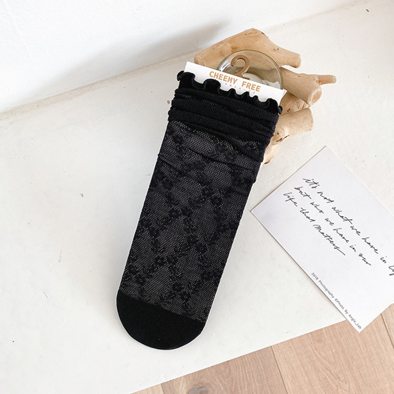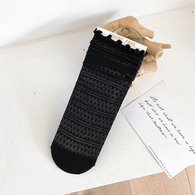 일본식 얇은 봄과 여름 레이스 스타킹 여성용 귀 레이스 중공 여성용 양말 중간 양말 학업 스타일 스택