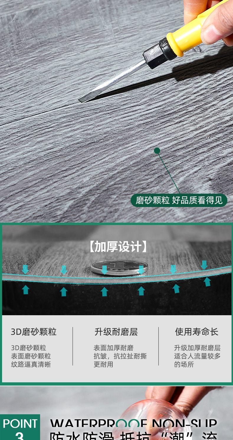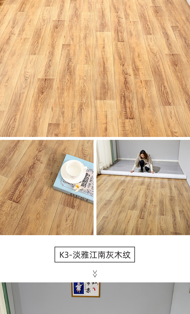 3 m 폭 바닥 가죽 가정용 시멘트 바닥은 두꺼운 내마모성 방수 플라스틱 자체 접착 바닥 스티커 전체를 직접 펼칩니다.스토어 가기