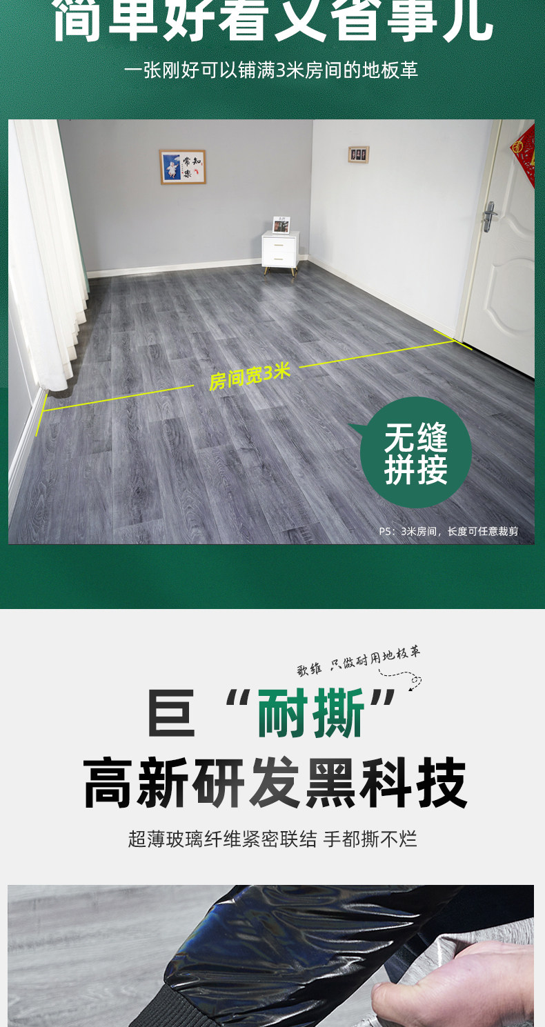 3 m 폭 바닥 가죽 가정용 시멘트 바닥은 두꺼운 내마모성 방수 플라스틱 자체 접착 바닥 스티커 전체를 직접 펼칩니다.