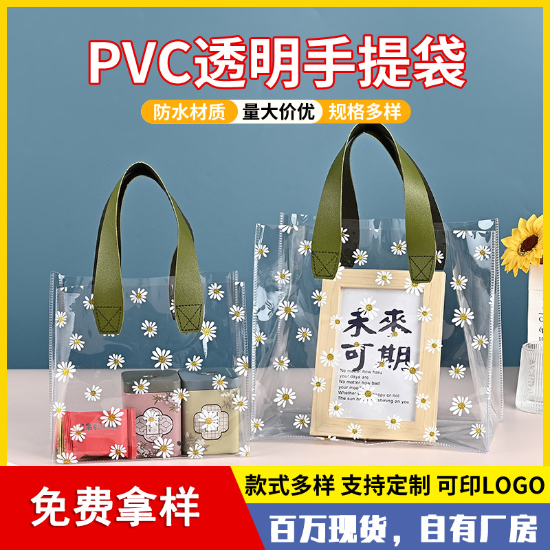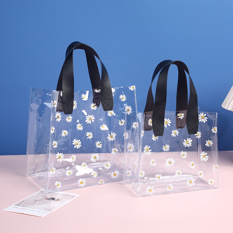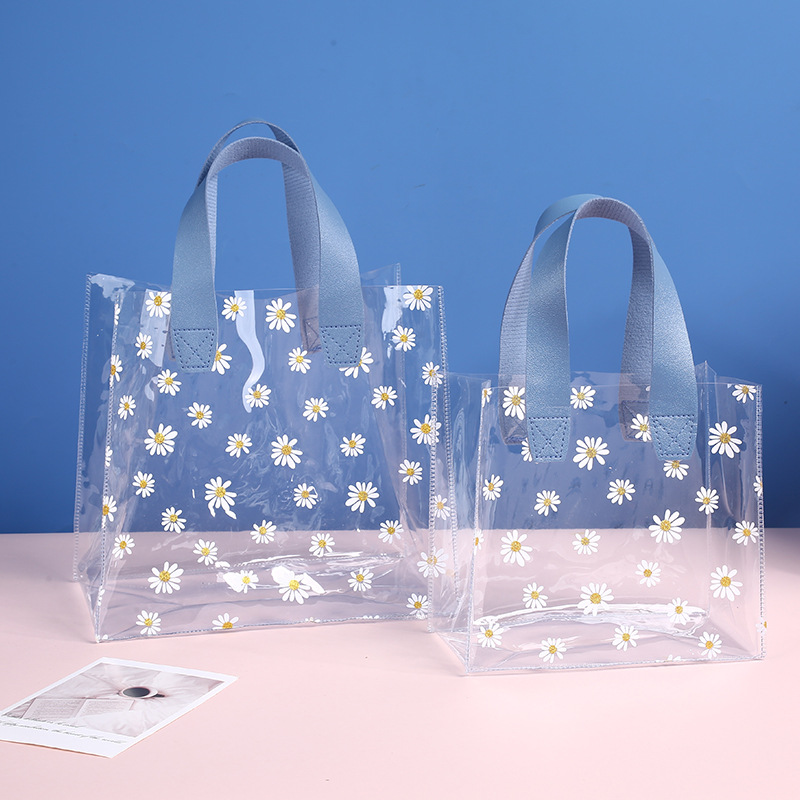 투명한 PVC 쇼핑백, 데이지 꽃무늬, 어린이날/생일 기념품 선물 가방