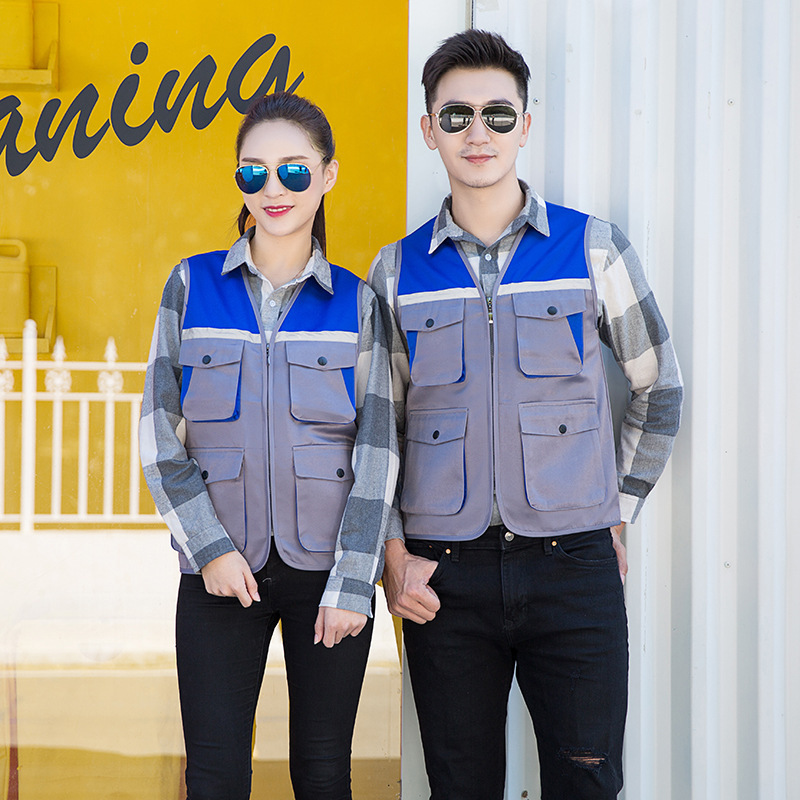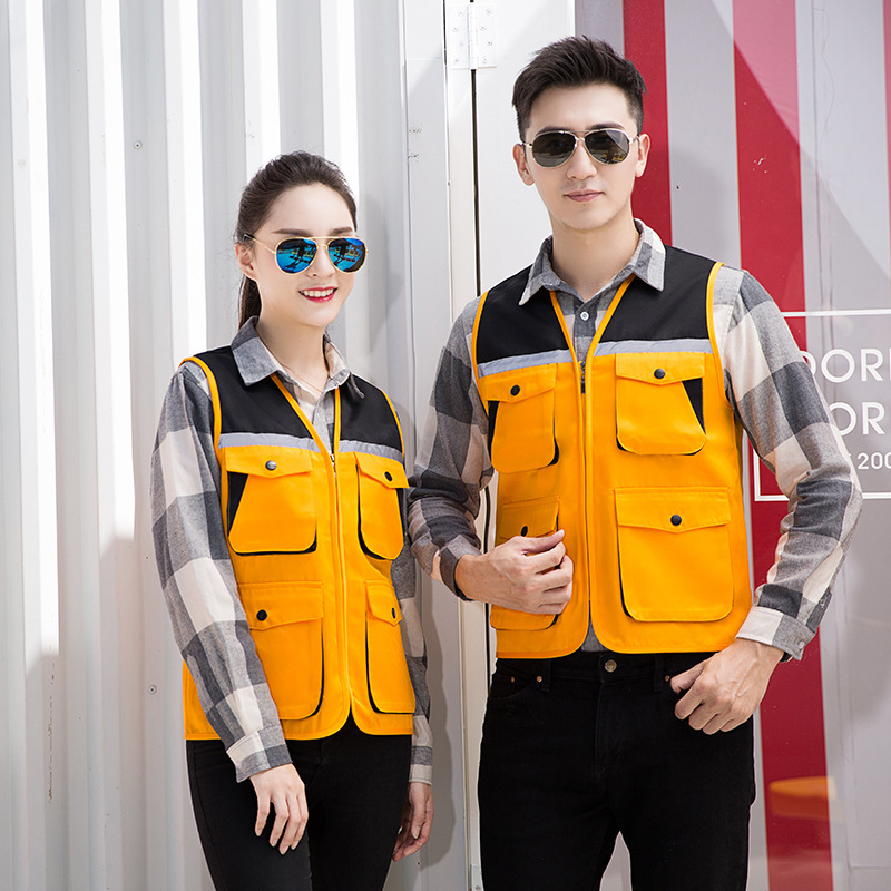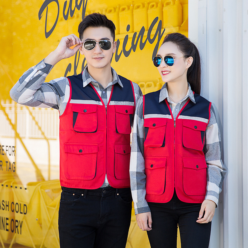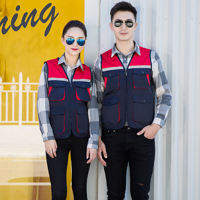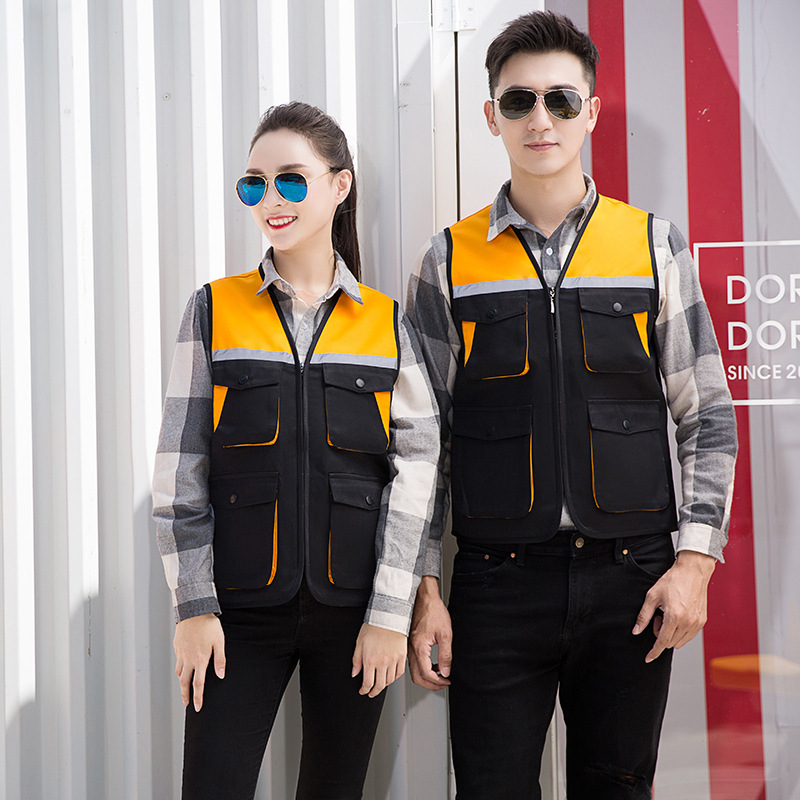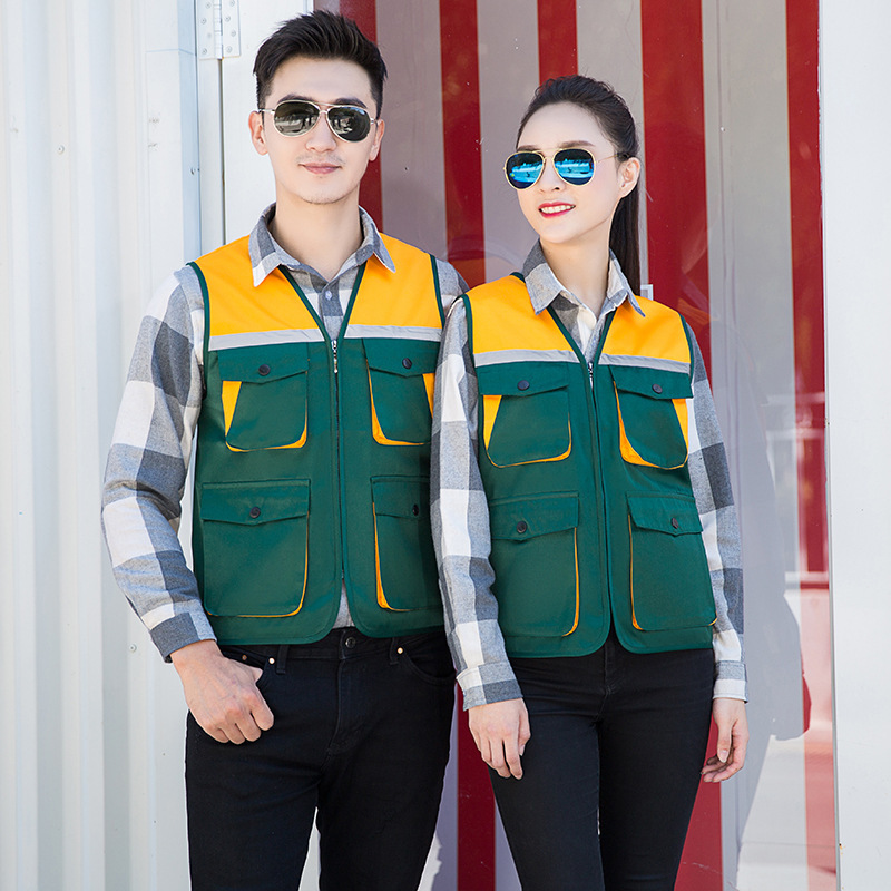 컬러 매칭 조끼 맞춤형 인쇄 로고 멀티 포켓 자원 봉사 작업복 야간 운전 하이라이트 반사 조끼 유니폼