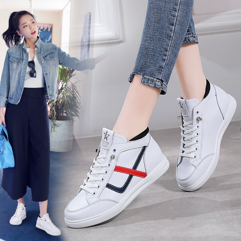 여성용 소가죽 하이탑 슈즈 2024 봄 신상 여성용 화이트 슈즈, 인기 캐주얼 다용도 학생 운동화, 통기성스토어 가기