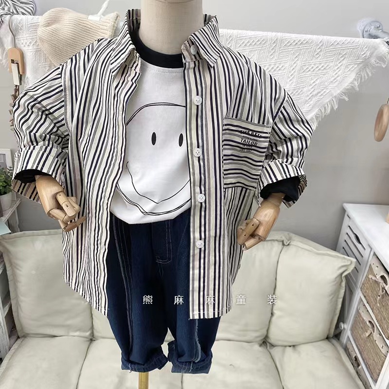 남학생 아동복 봄 2025 한국 패션 줄무늬 트렌디 스트리트 탑 보물 셔츠 학생 여성 보물
