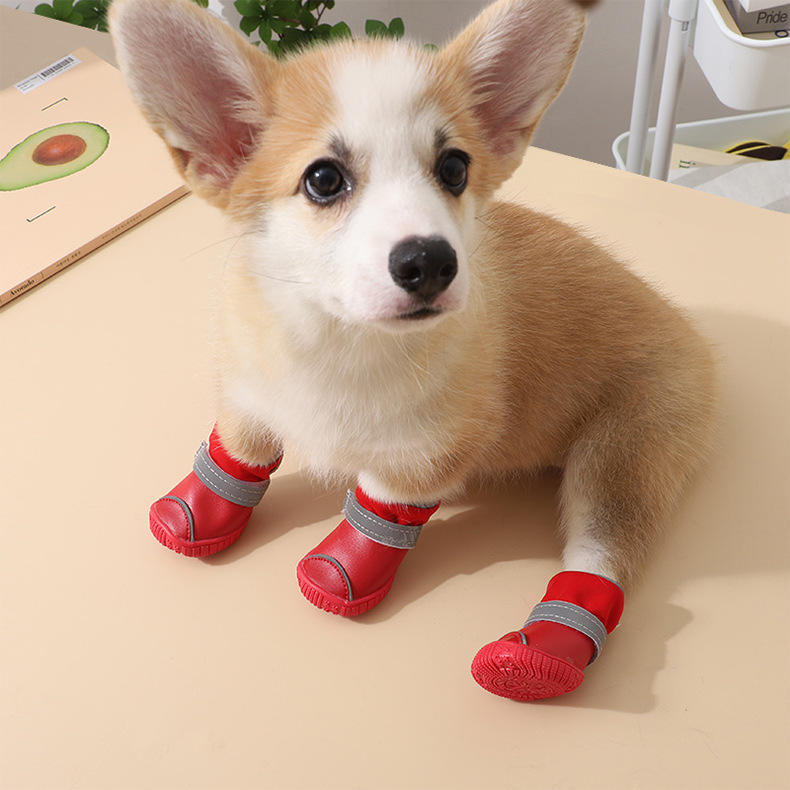 애완 동물 신발 테디 신발 작은 개 벨크로 레인 슈즈 Bixie Corgi 신발 사계절 강아지 신발 방수 가죽 신발