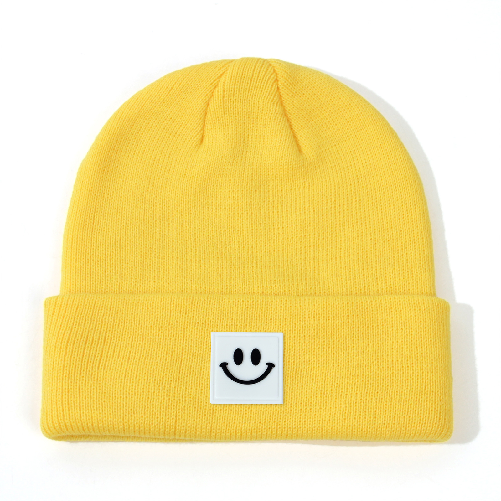아기의 니트 모자 패션 모든 매치 울 모자 귀여운 스마일 패턴 풀오버 모자 가을과 겨울 모자 어린이 모자