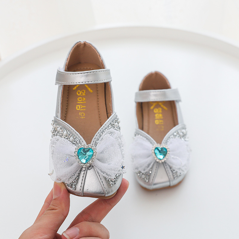 여아 가죽 신발 2025 가을 신상 아동 봄, 가을 부드러운 밑창 신발 어린 소녀 엘사 공주 신발 크리스탈 신발