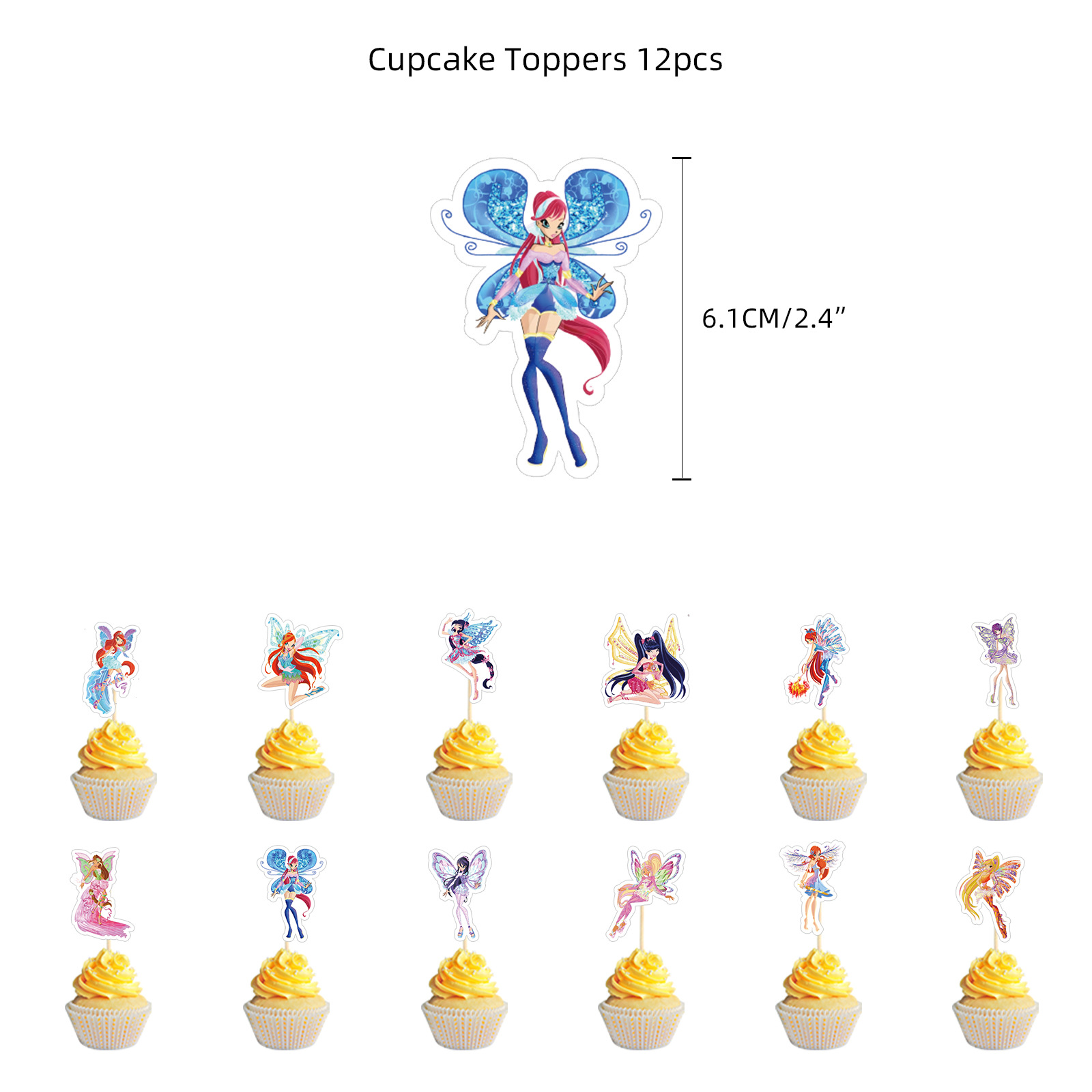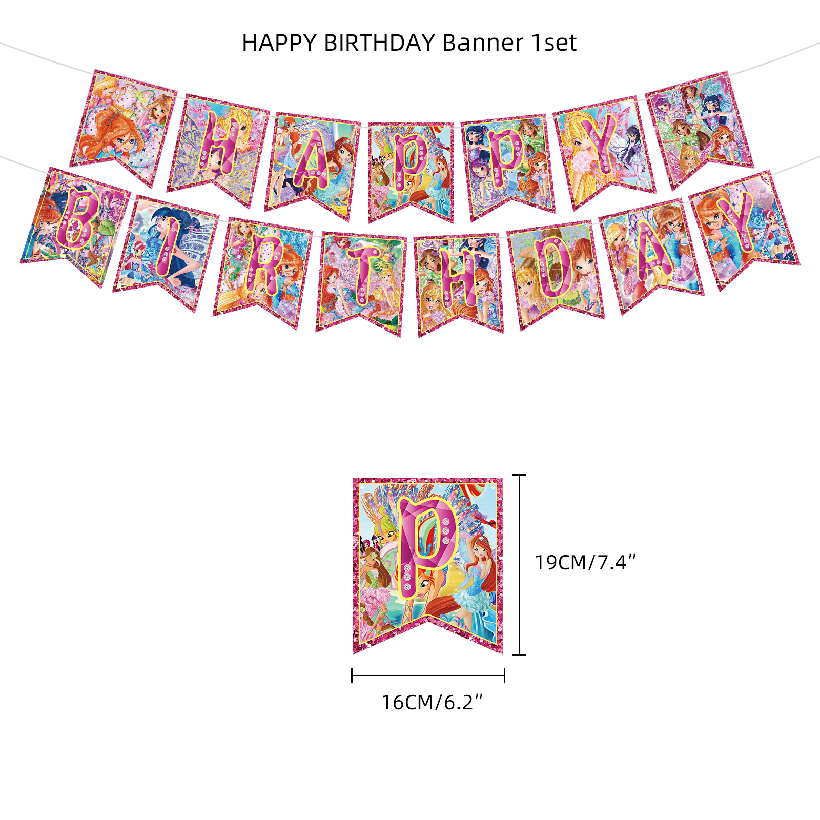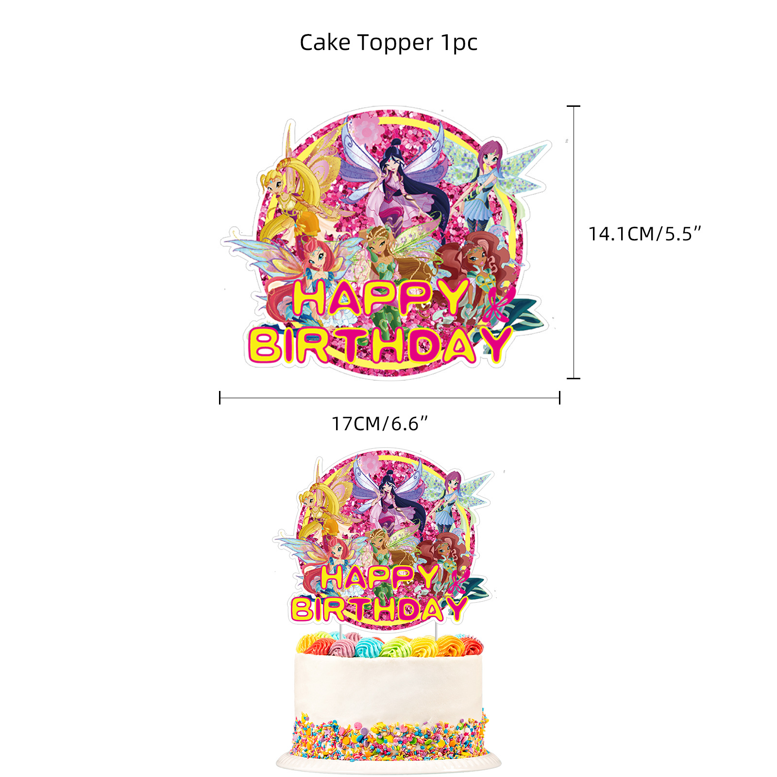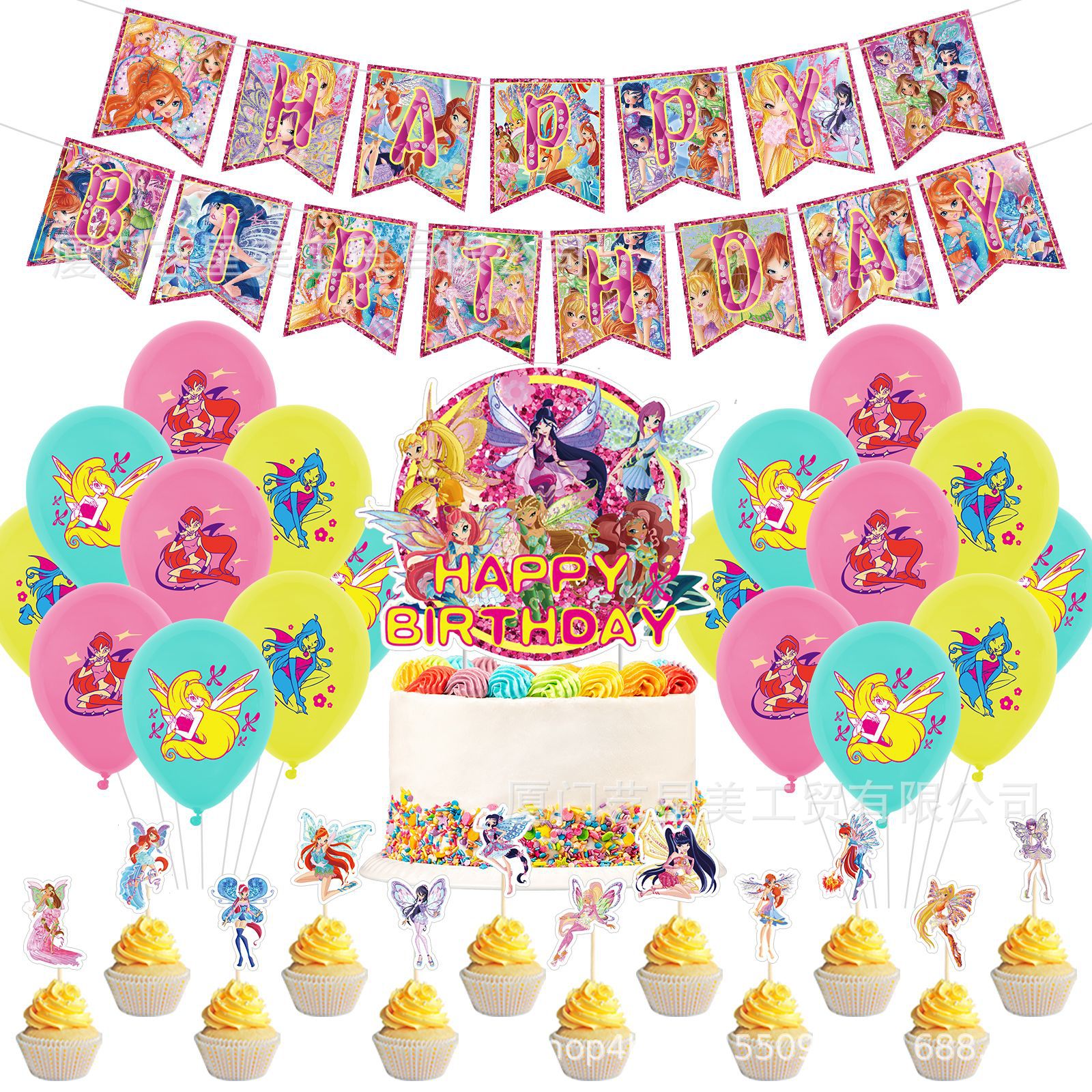 Winx 클럽 생일 파티 장식 깃발 케이크 깃발 풍선 장식 세트