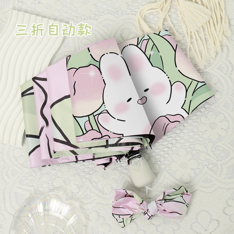 보라색 유화 꽃 태양 우산 자동 우산 블랙 접착제 태양 보호 UV 보호 햇빛 비 접는 우산 도매