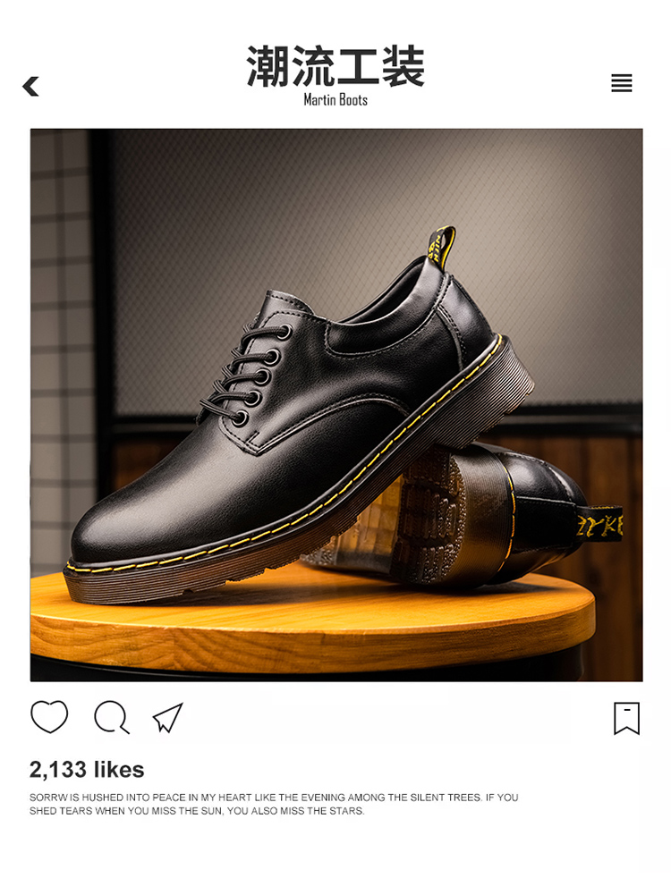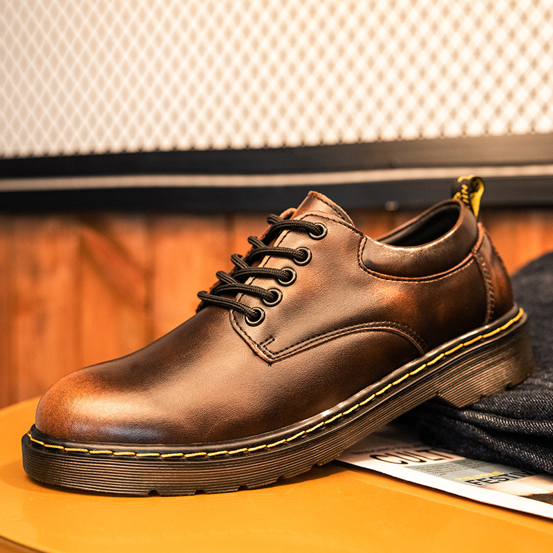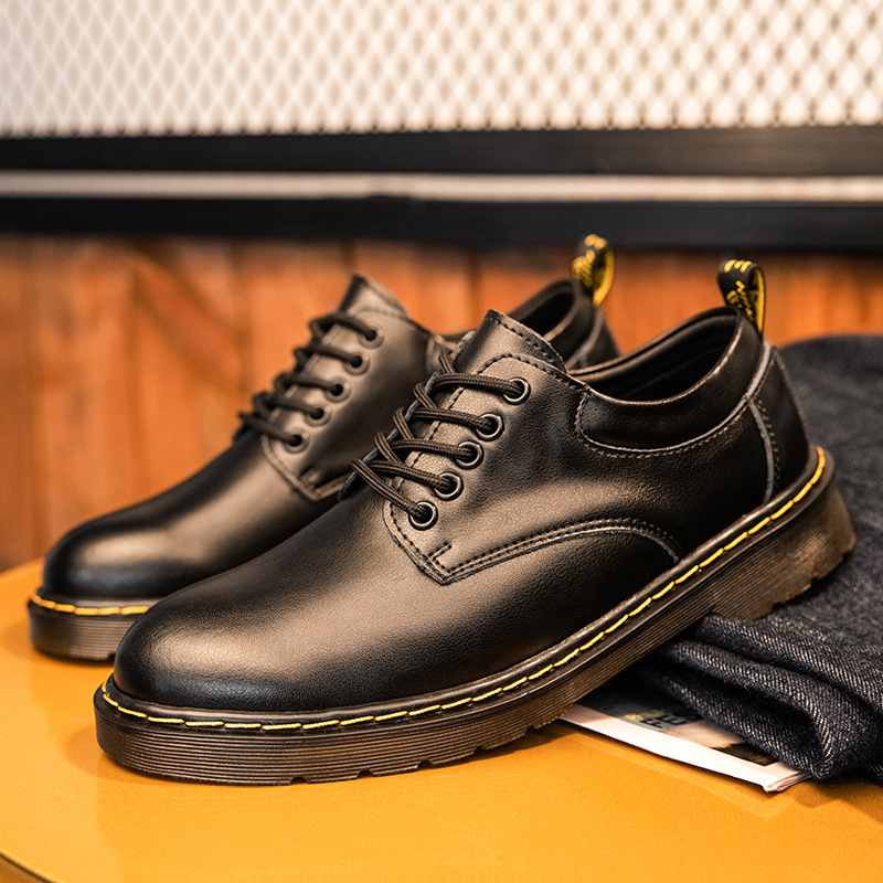 真皮男士马丁鞋2022夏季新款低帮休闲工装鞋男鞋英伦皮鞋系带单鞋
