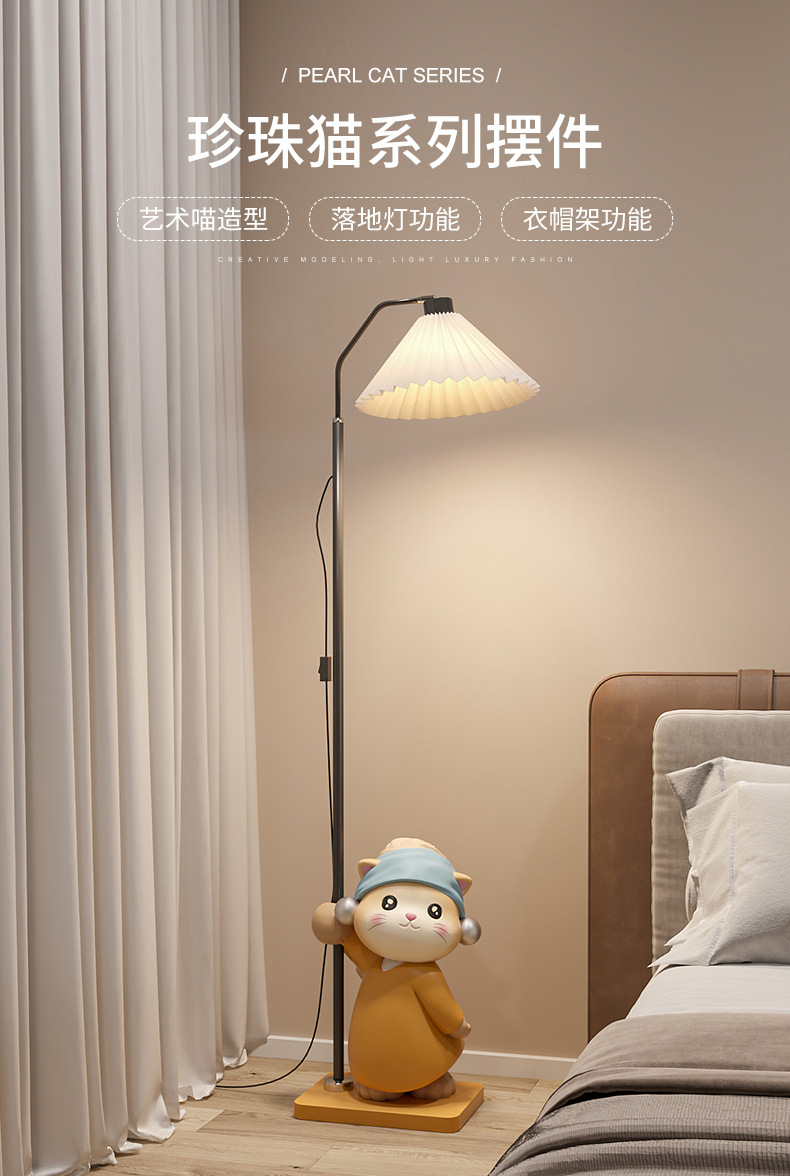 귀여운 어린이 방 침대 옆 침대 옆 야간 조명 장식 만화 고양이 거실 대형 바닥 장식 조명