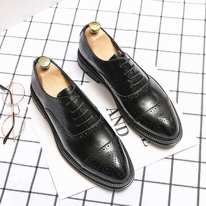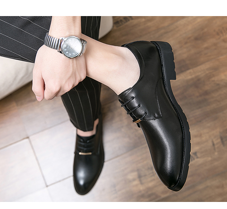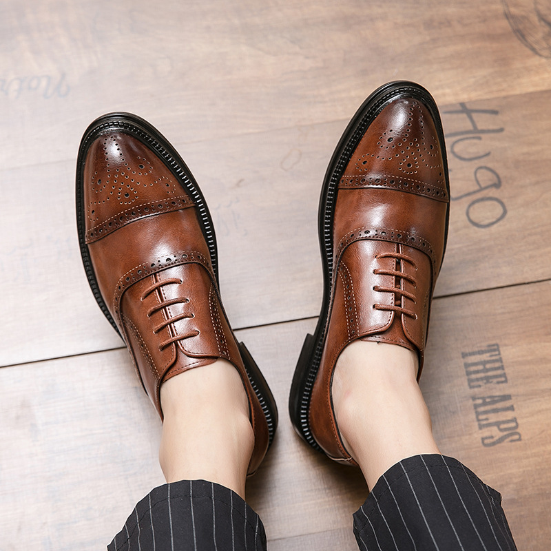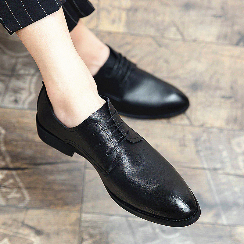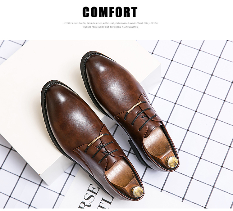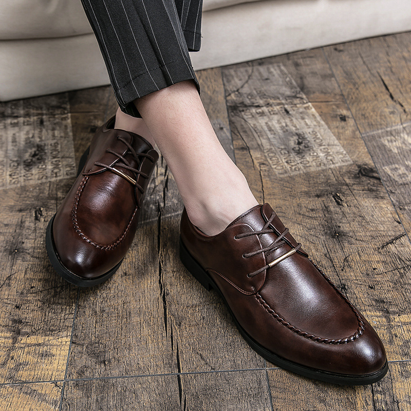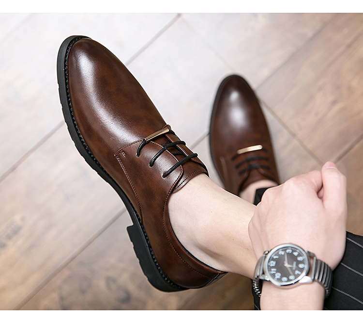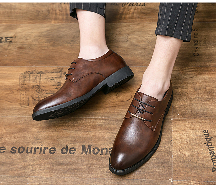 가죽 신발 남자의 영국 비즈니스 원피스 한국 유행 부드러운 바닥 뾰족한 신랑의 결혼 선물 캐주얼 신발 다크 브라운