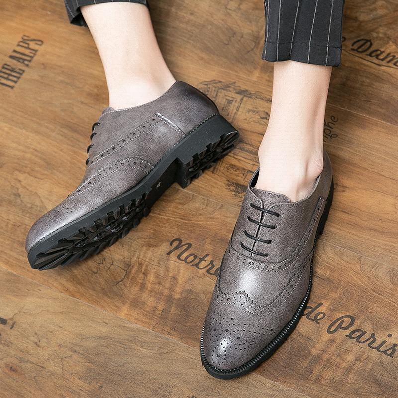 皮鞋男英伦商务正装韩版潮流软底尖头内增高新郎结婚礼休闲鞋棕色