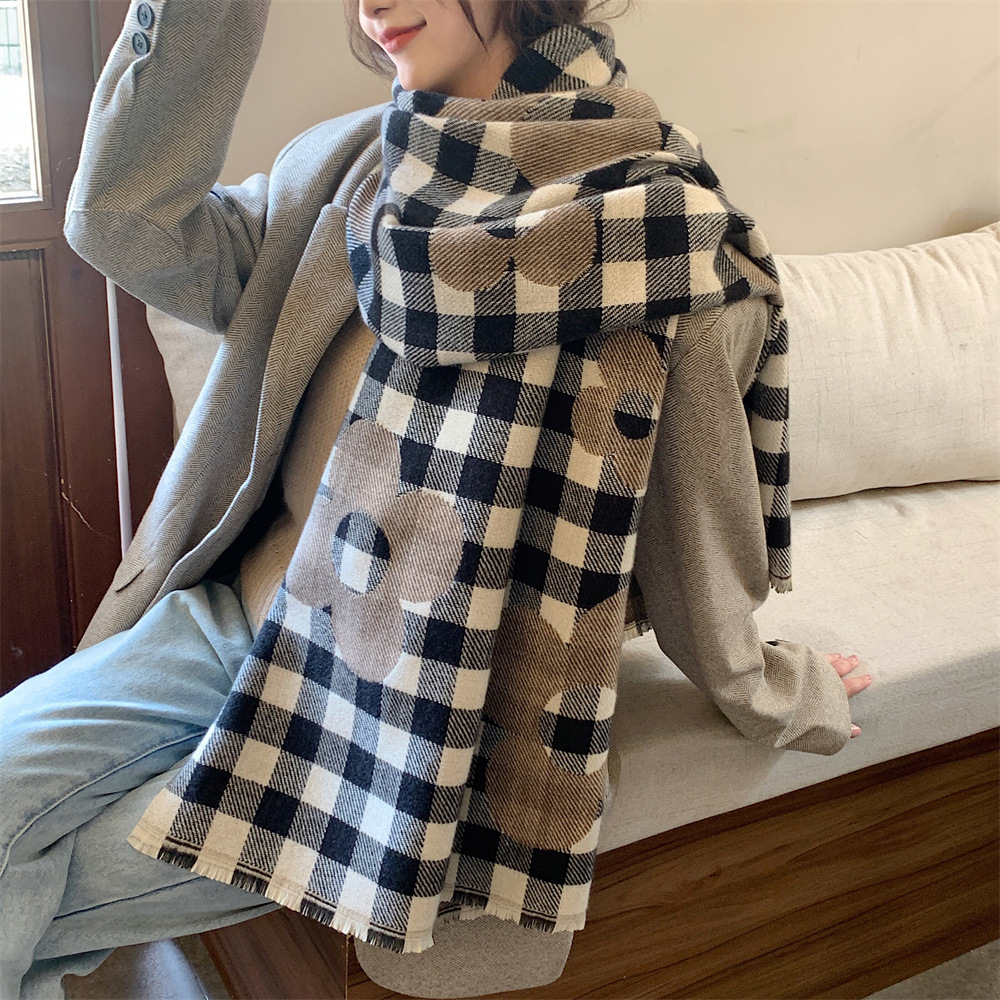 In 스타일 우아한 복고풍 영국 격자 무늬 꽃 겨울 두꺼운 따뜻한 긴 캐시미어 느낌 스카프 남성과 여성 패션스토어 가기