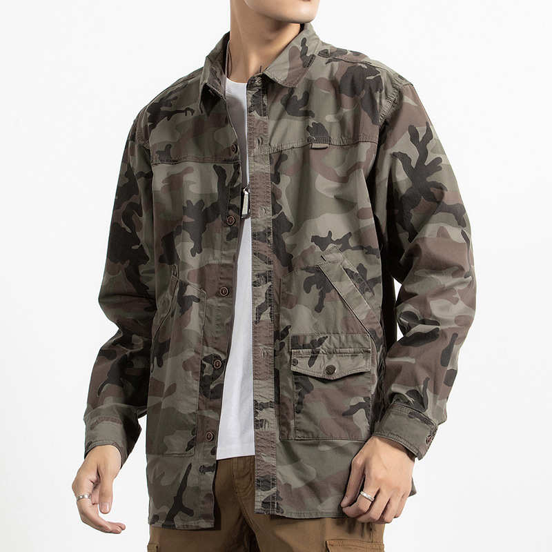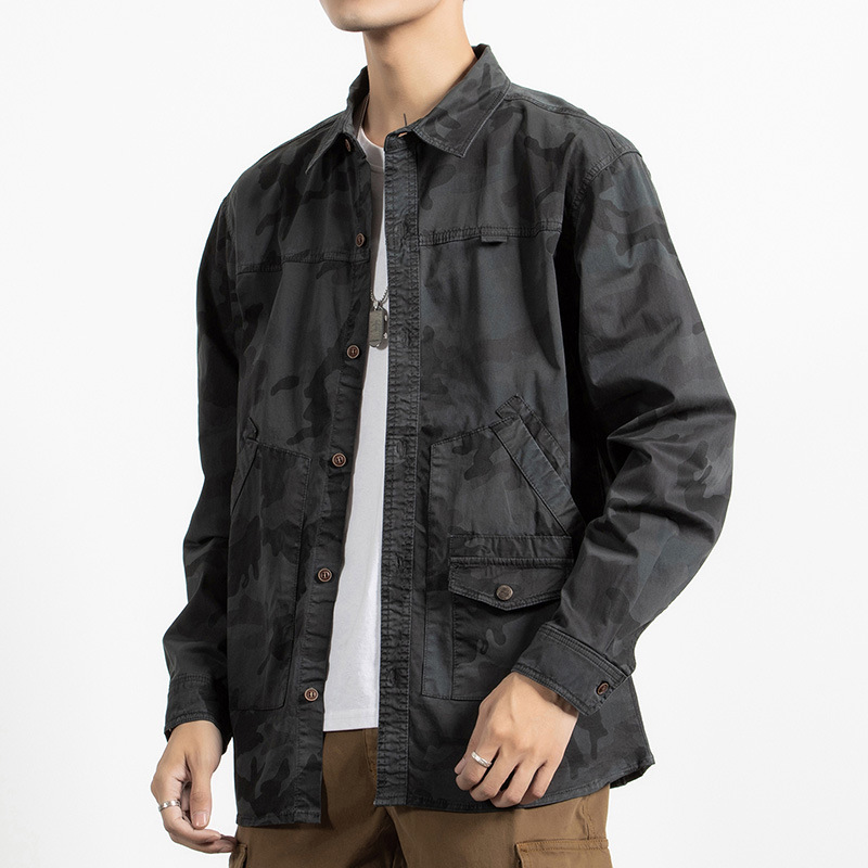 가을 새로운 위장 작업 셔츠 2023 패션 간단한 조커 일본 패션 홍콩 스타일 크로스 보더 아마존스토어 가기