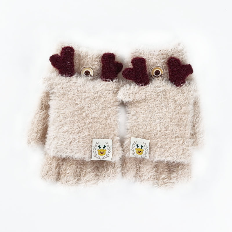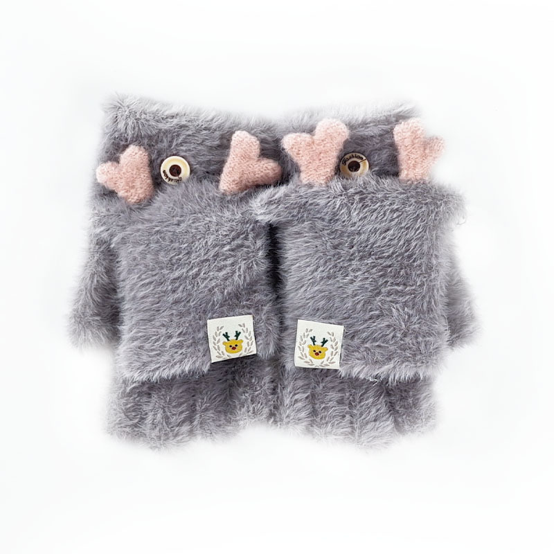 여성용 겨울 학생용 반장갑 귀여운 한국 스타일 따뜻한 만화 캐릭터 선택 가능한 색상 플러스 벨벳 장갑 제조업체 도매
