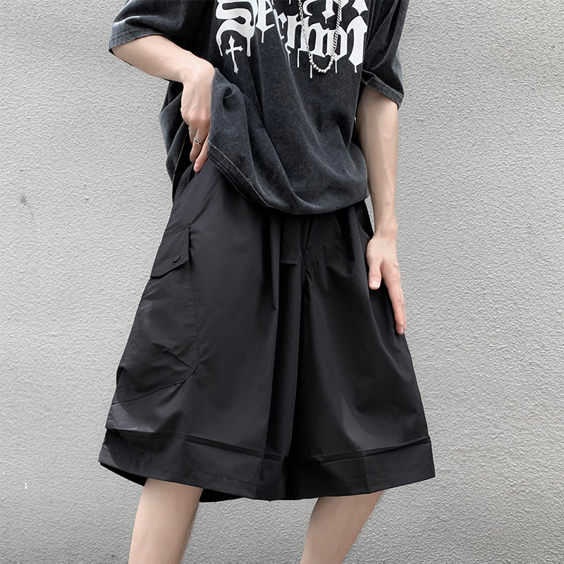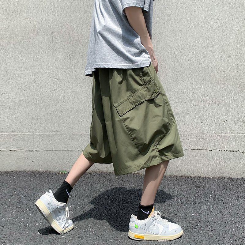 홍콩 스타일 포켓 반바지 여름 얇은 바지 남성용 스트레이트 트렌디 브랜드 하이 스트리트 느슨한 캐주얼 멀티 포켓 반바지스토어 가기