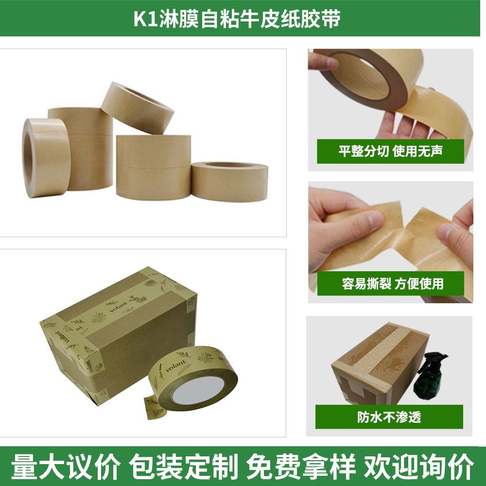 맞춤형 환경 보호 클램프 젖은 물 크래프트 종이 테이프 인쇄 물 무료 자체 접착 크래프트 종이 테이프 공장