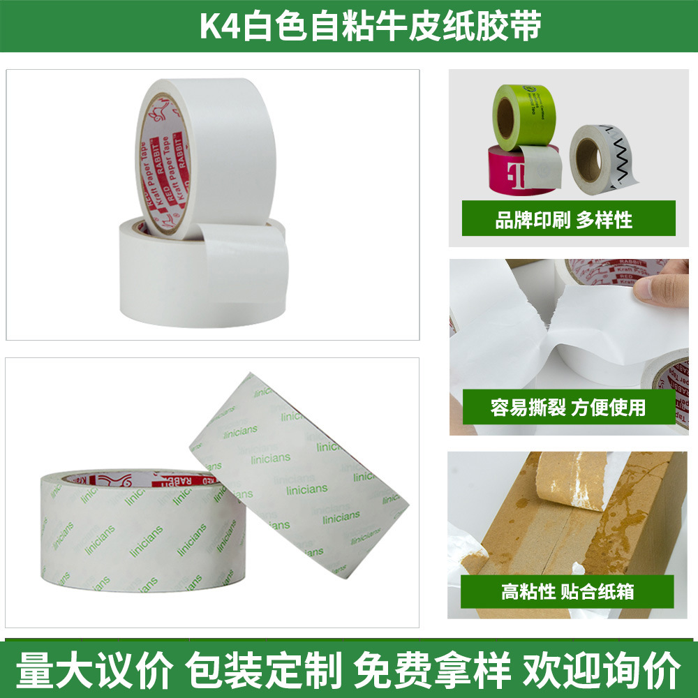 • K4 흰색 자체 접착 크래프트 종이 테이프(맞춤형 문의);50mm*45m