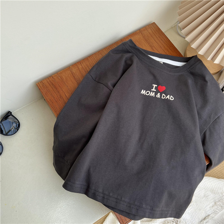 가을 2022 어린이 긴팔 바닥 셔츠 한국 소년 소녀 재미있는 텍스트 긴팔 티셔츠 귀여운 둥근 목 탑