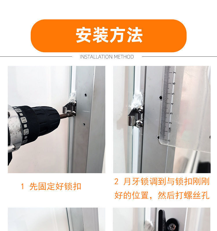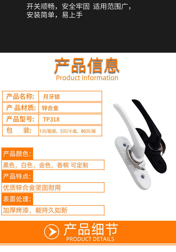 알루미늄 합금 문 및 창 부속품 창 자물쇠 플라스틱 강철 문 및 창 부속품 미닫이 문 초승달 자물쇠 안전 창 자물쇠스토어 가기