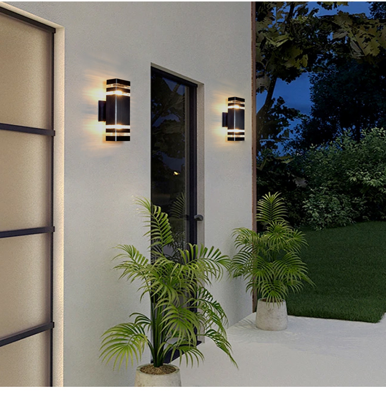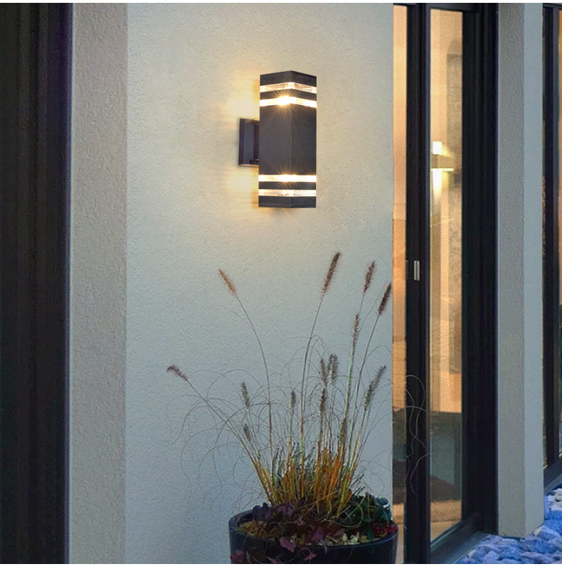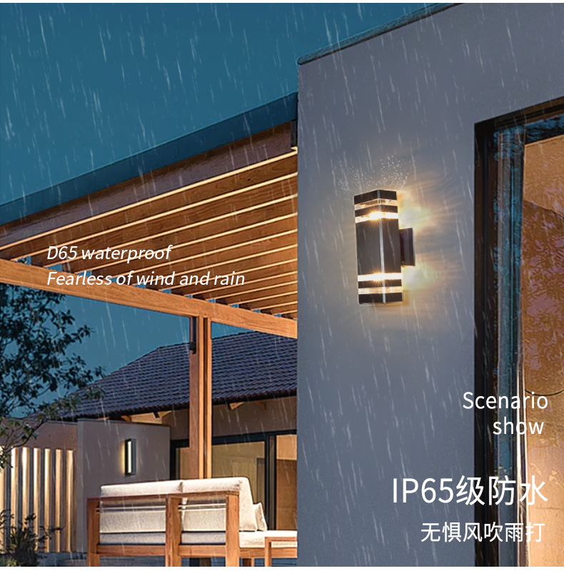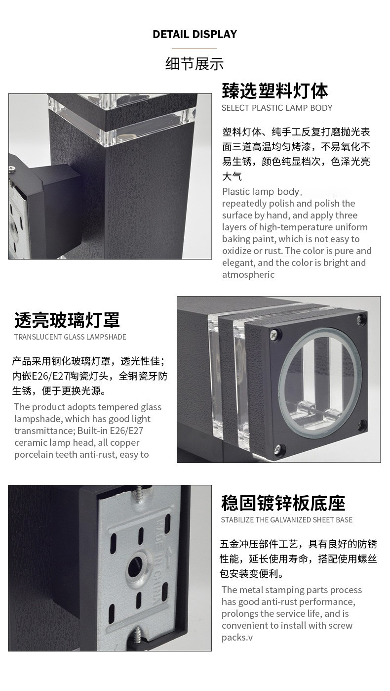 야외 더블 헤드 벽 램프 플라스틱 쉘 위아래 조명 E27 야외 방수 외벽 벽 교수형 안뜰 조명 PVC 키트스토어 가기