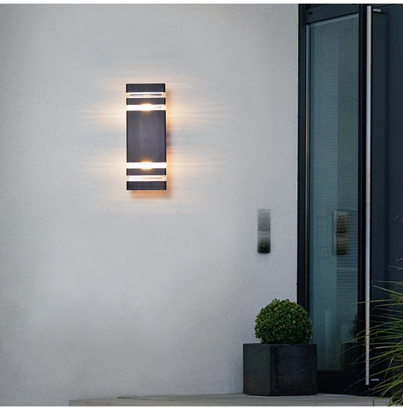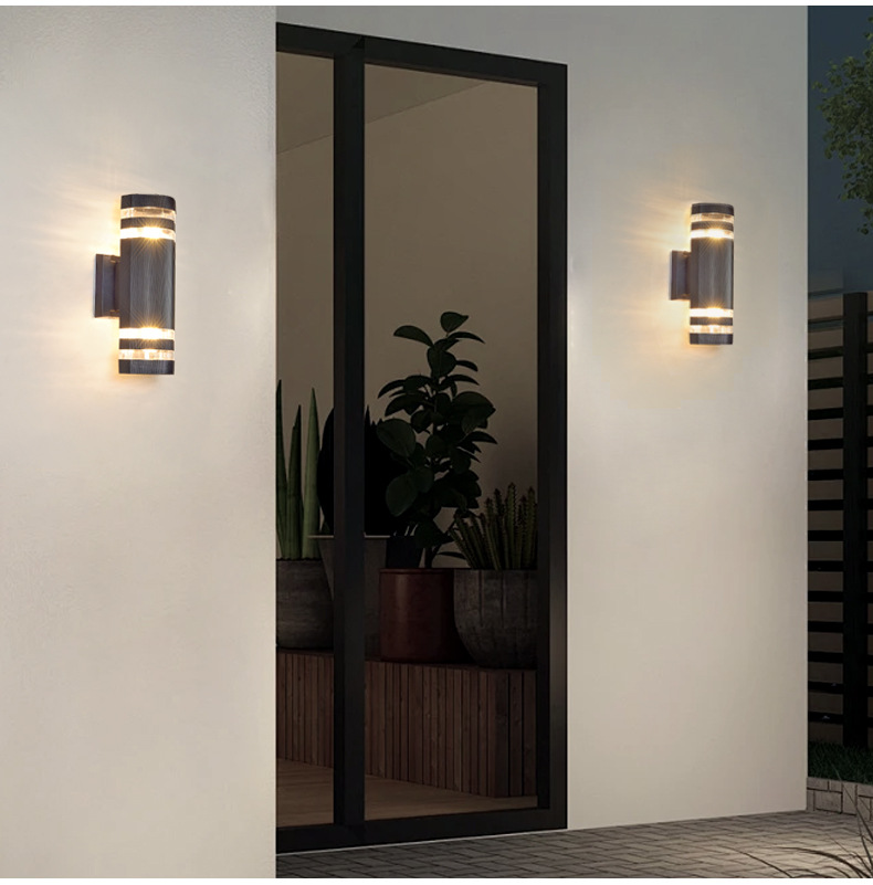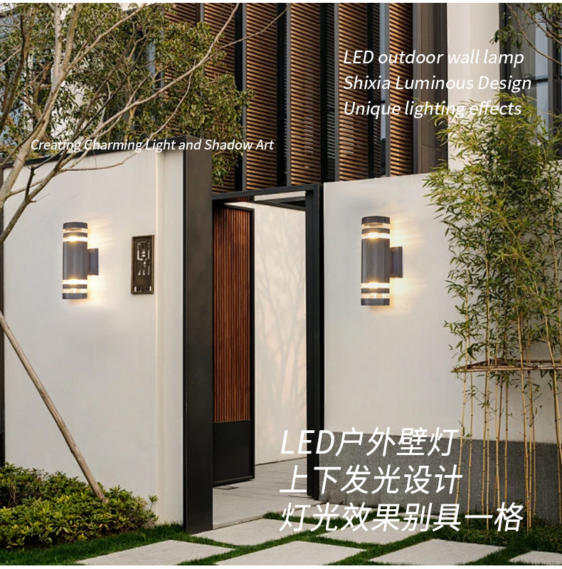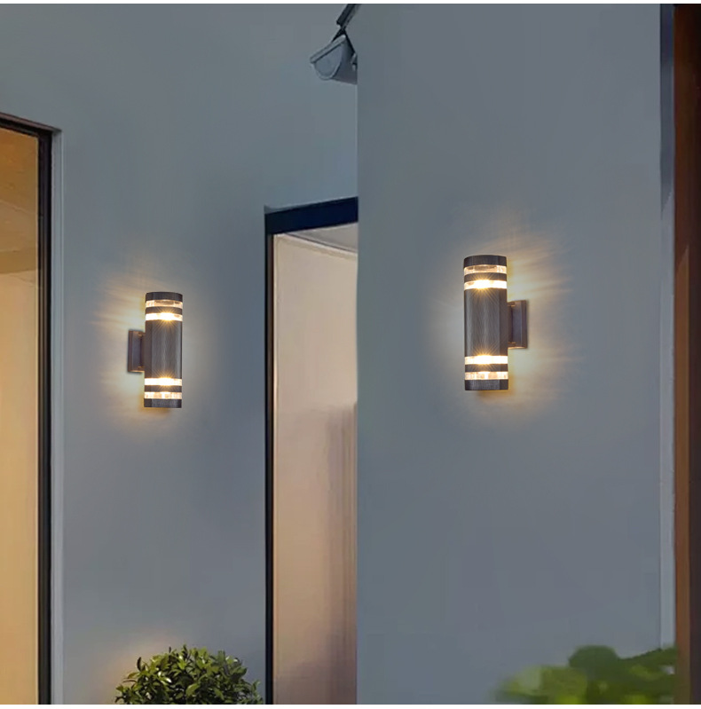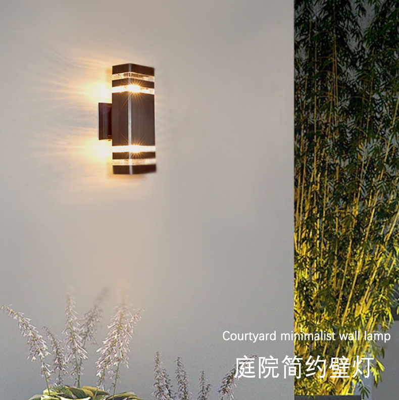 야외 더블 헤드 벽 램프 플라스틱 쉘 위아래 조명 E27 야외 방수 외벽 벽 교수형 안뜰 조명 PVC 키트스토어 가기
