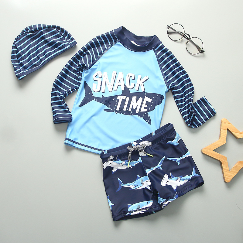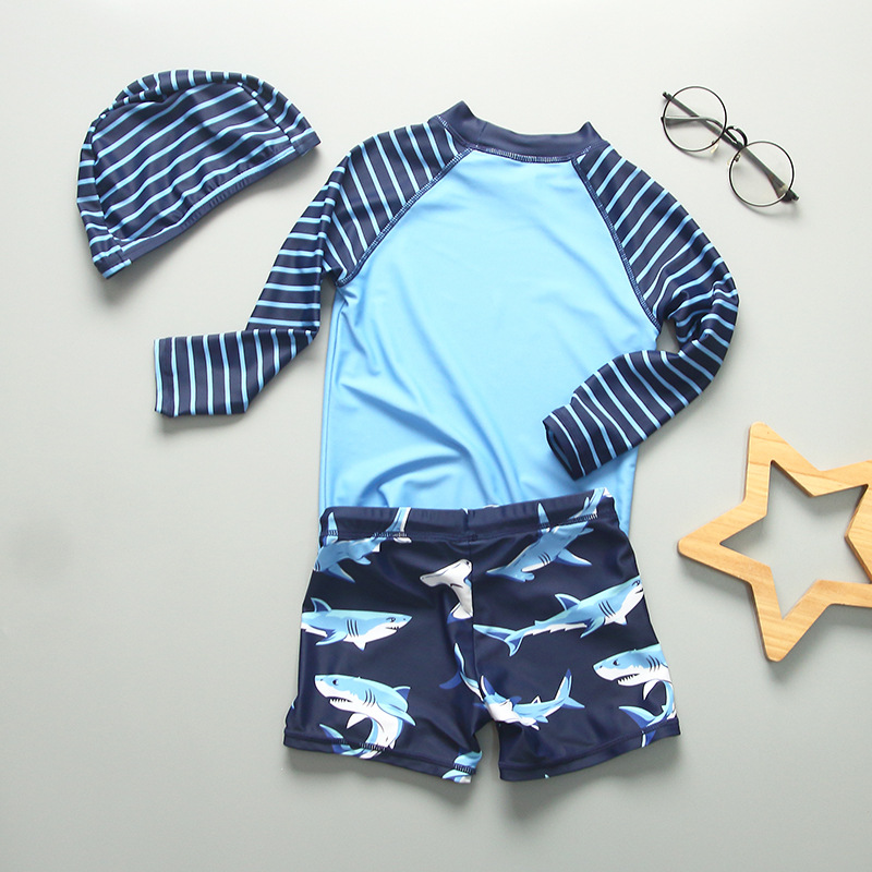 儿童泳衣男童鲨鱼长袖防晒婴儿小中大童宝宝男宝沙滩游泳衣冲浪服