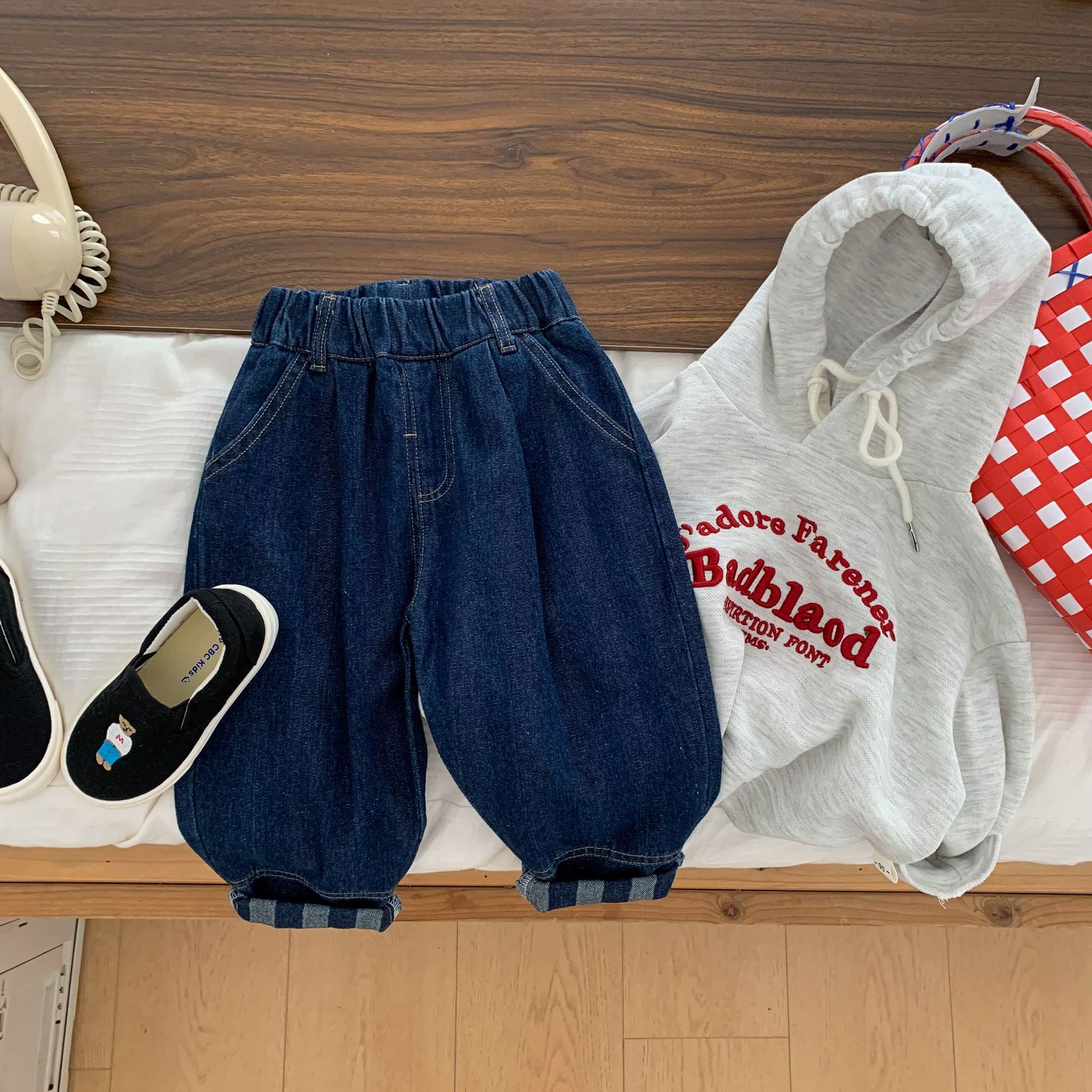 어린이 바지 2025 Bangcheng 가을 스타일 어린이 세로 포켓 청바지 아기 느슨한 캐주얼 바지 C0206