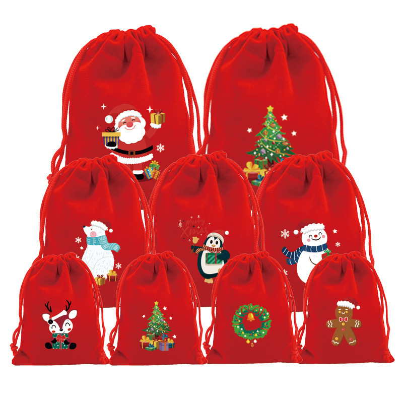 공장 도매 큰 빨간 크리스마스 벨벳 가방 크리스마스 사과 사탕 포장 가방 선물 가방 크로스 보더 번들 포켓스토어 가기