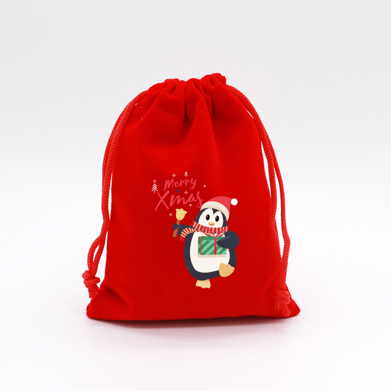 • SD01-penguin 벨 선물; 큰 빨간 벨벳 가방; 13*18cm