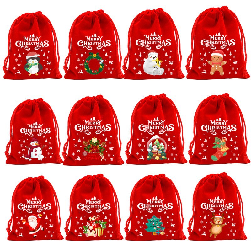 • 무작위 혼합 색상 크리스마스 스타일; 빨간 벨벳 가방; 10*16cm