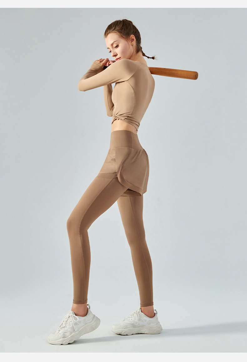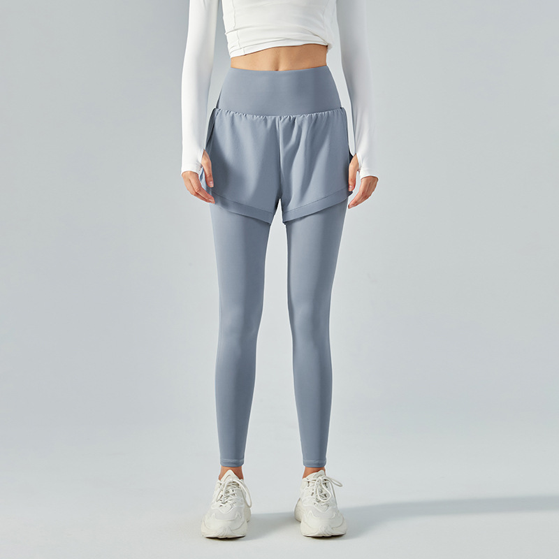 닝보 Anjiu 가짜 투피스 요가 바지 여성용 여름 얇은 하이 웨이스트 힙 리프트 원활한 알몸 바지 스포츠 피트니스 바지