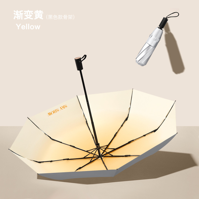 8 뼈 작은 신선한 그라디언트 컬러 3 배 티타늄 실버 접착제 선 스크린 태양 우산 여성의 개인 창조적 인 맑은 단단한 나무 우산