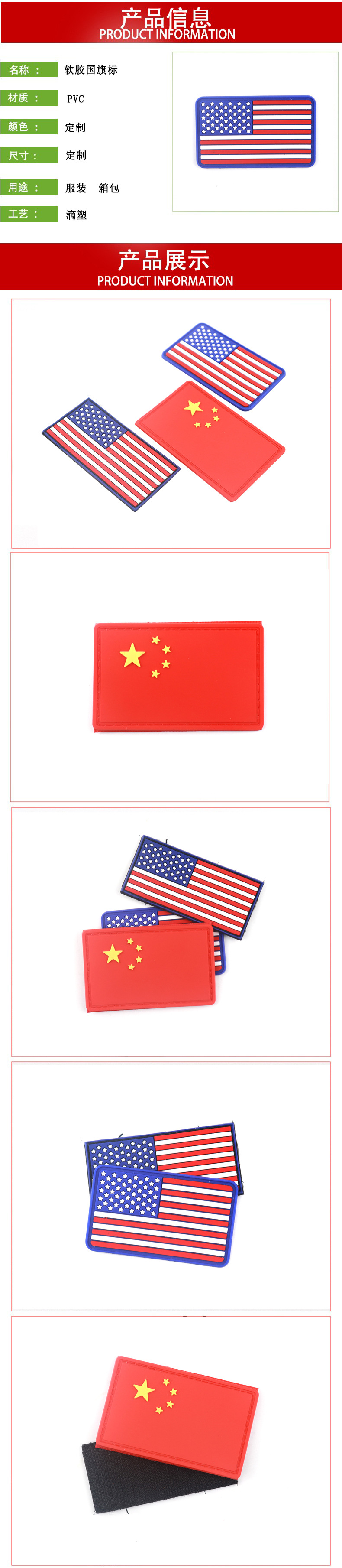 즉시 출고 가능한 국기 라벨 자수형 벨크로 스티커 중국 미국 플라스틱 라벨 의류용 PVC 배지 가죽 라벨 제조업체스토어 가기