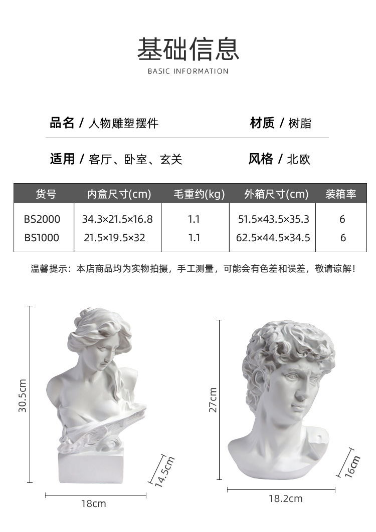 유럽식 미술 장식품 가정 용품 피아노 여성 모조 석고 그림 머리 수지 조각 미술 전시관 장식