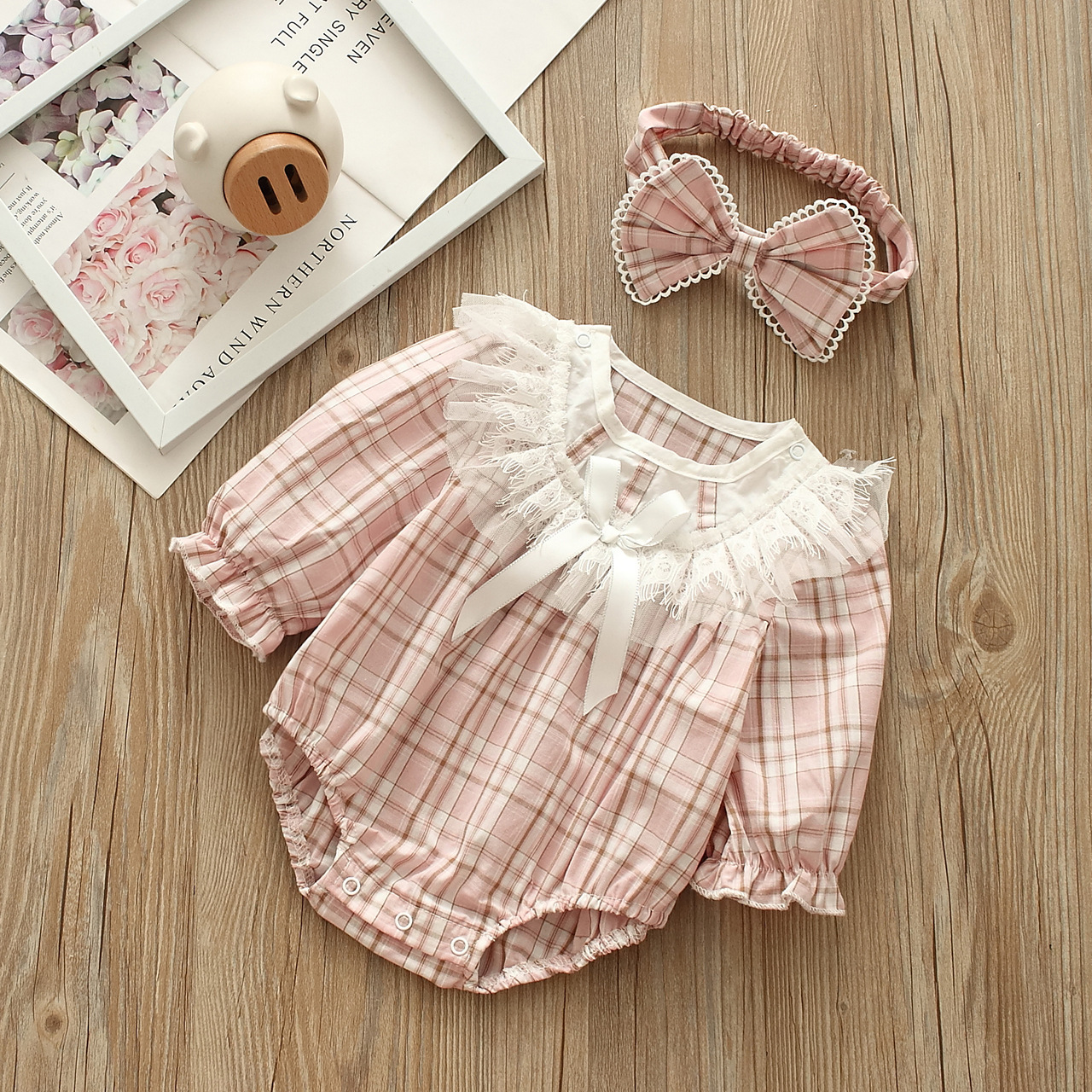• 핑크 흰색 격자 활 Khayi + 헤어 밴드