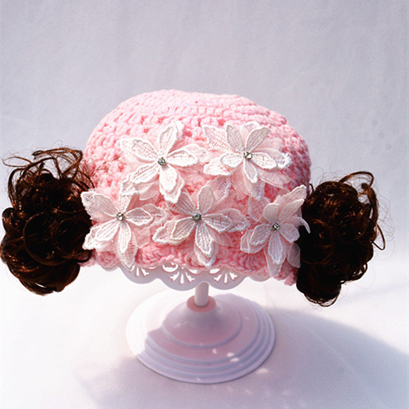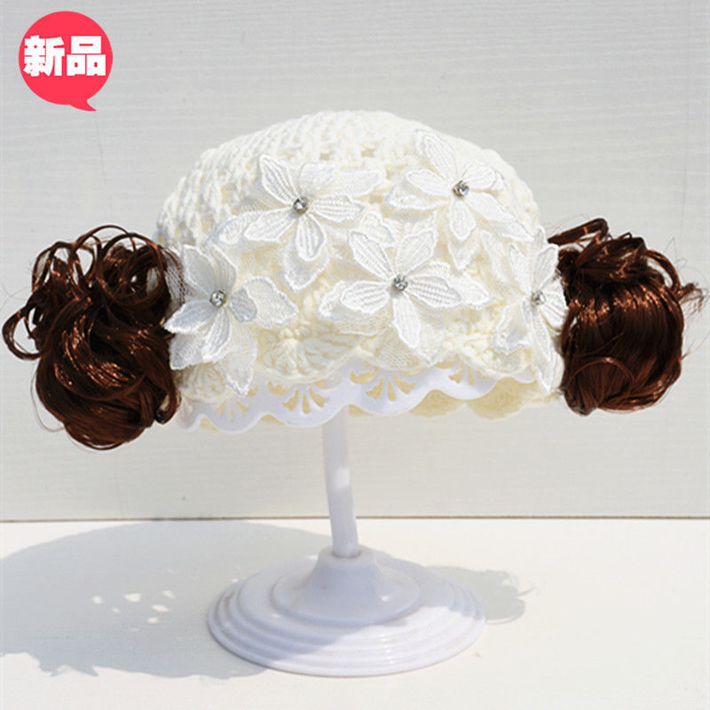 아기 가발 모자 아기 공주 0-1-2 세 손으로 짠 레이스 꽃 한국식 신생아 모자 Qiu Meng