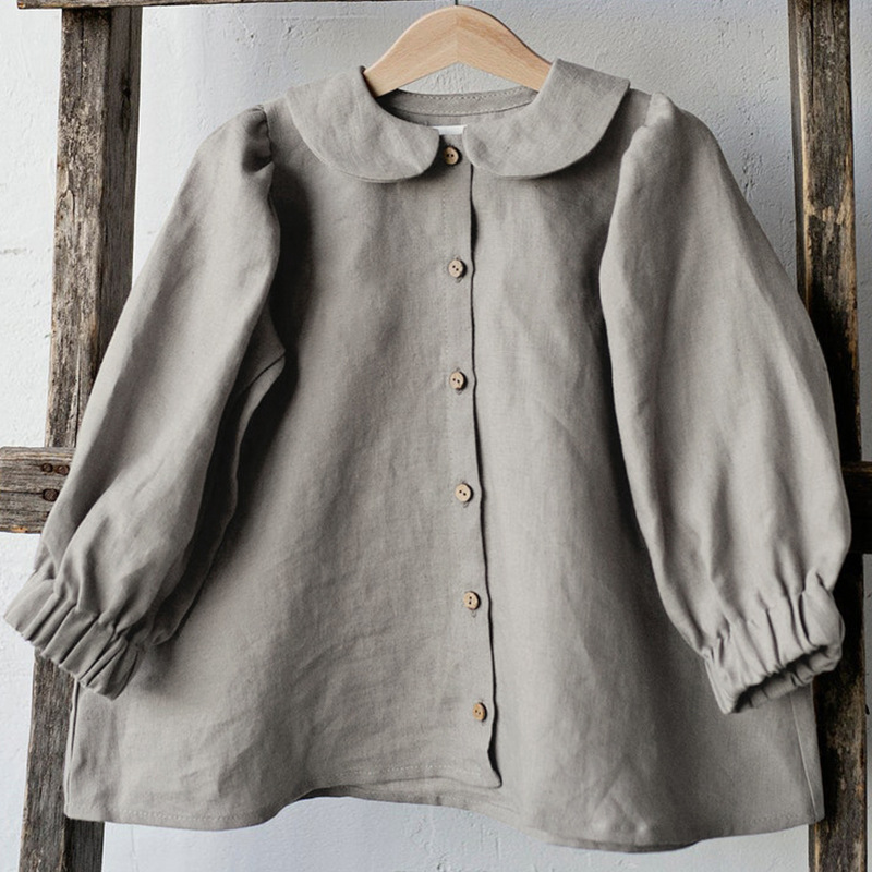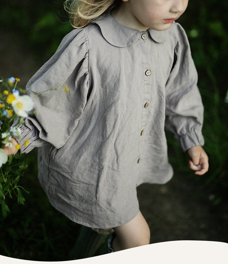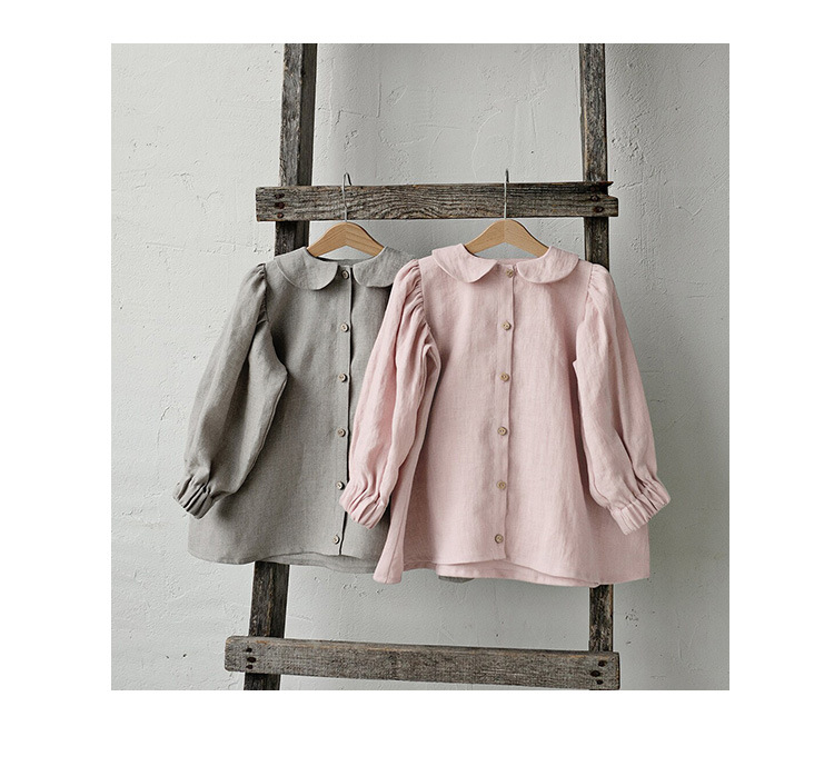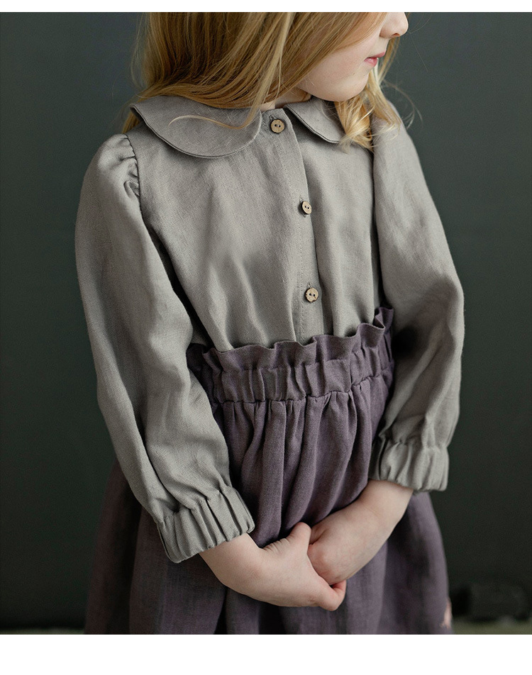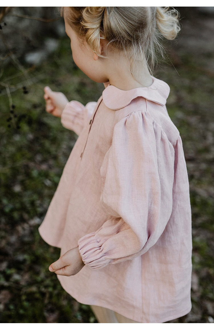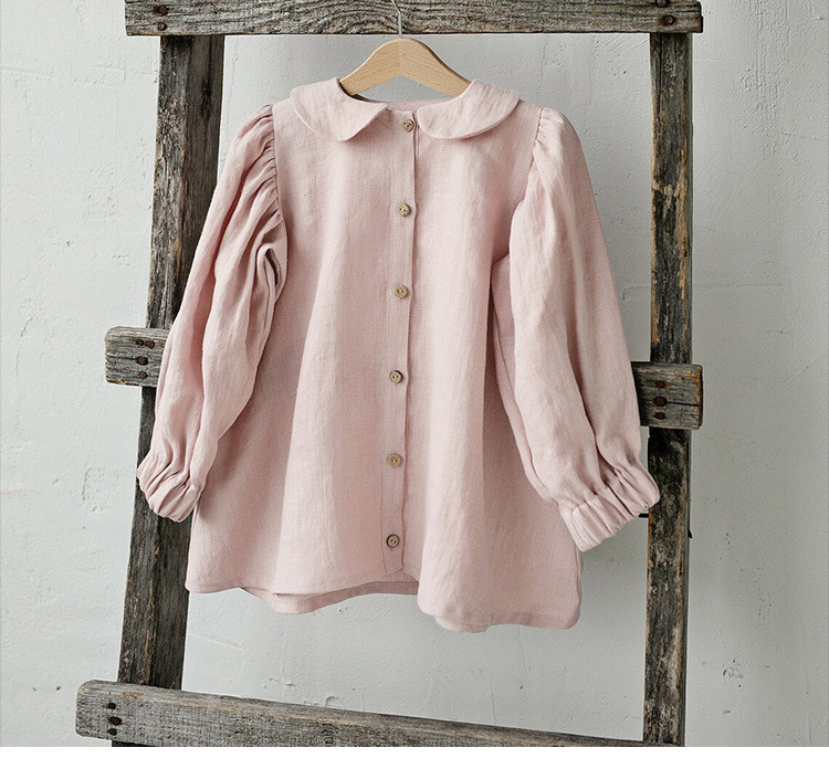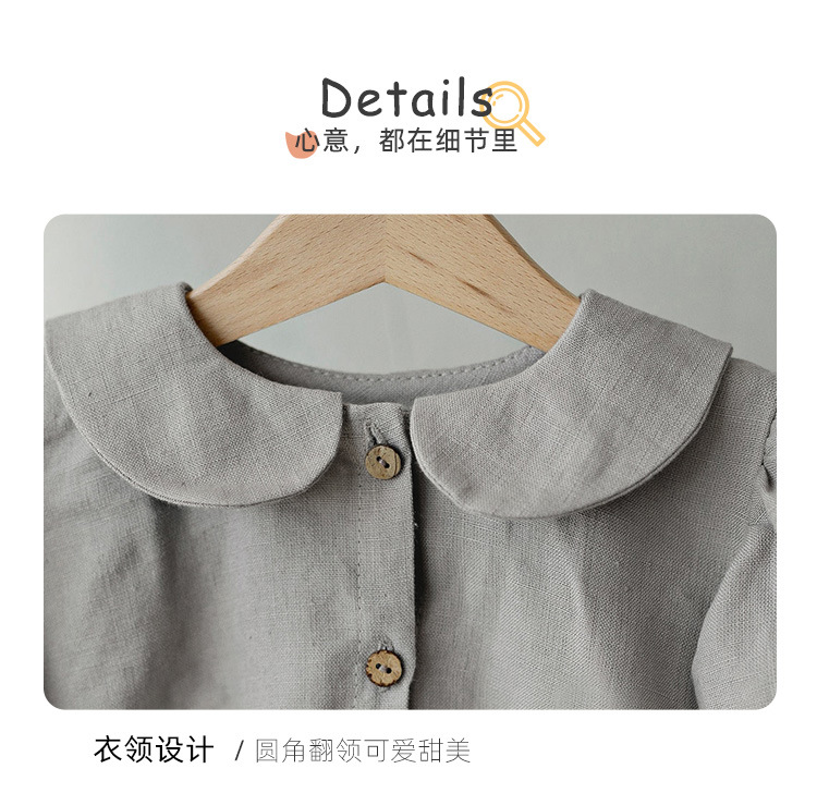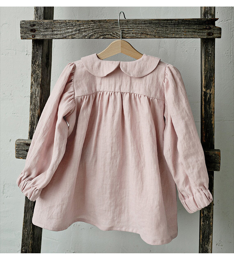 여아 모리 코튼 린넨 원피스 2023 가을 새로운 아기 소녀 인형 칼라 공주 스커트 기본 탑