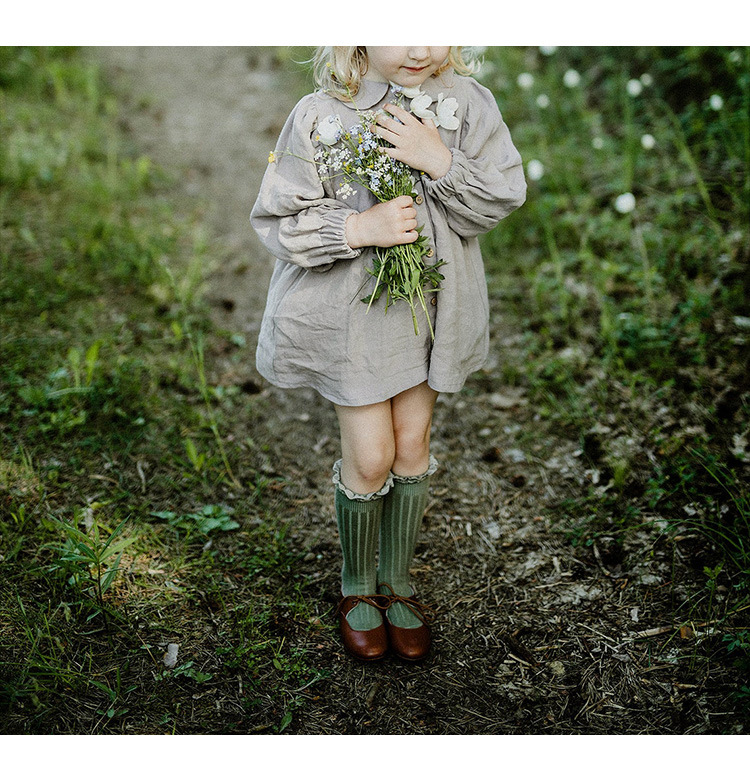 여아 모리 코튼 린넨 원피스 2023 가을 새로운 아기 소녀 인형 칼라 공주 스커트 기본 탑스토어 가기