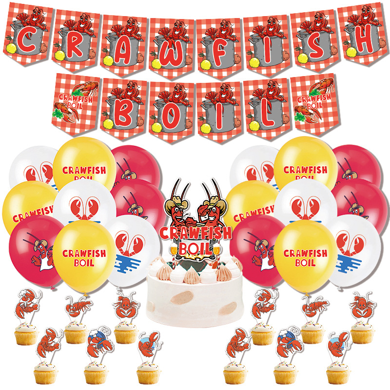 재고 가재 끓인 왕새우 테마 파티 장식 용품 장식 장면 풍선 풀 플래그 패키지